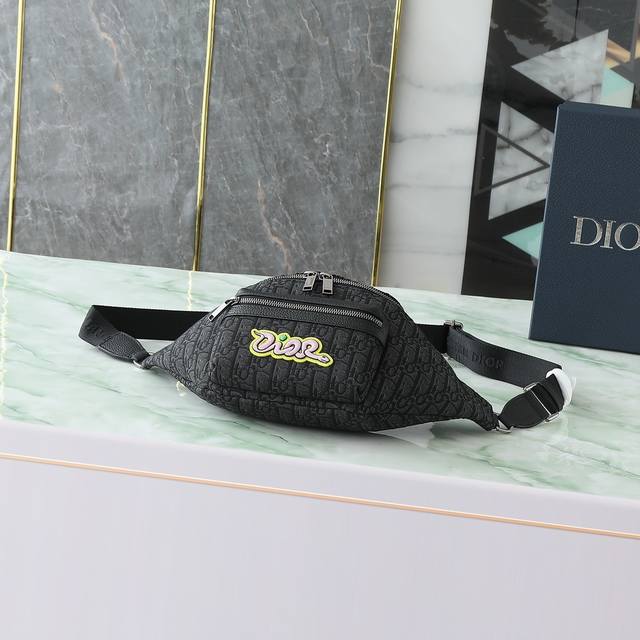 This Rider 2.0 waist bag is from the Dior And Kaws limited edition collection. Crafted from black Oblique printed fabric, it features a tonal grained calfskin zip pocket on the front, accented with pink and yellow Dior And Kaws rubber patches for a touch of sophistication, and a colorful snake motif reinterpreting the Dior logo. The main zip compartment offers ample storage for everyday essentials, and it comes with an adjustable leather strap for crossbody wear. Body: Cotton, technical fabric, cowhide leather Lining: Cotton, technical fabric, cowhide leather Main zippered compartment Interior slip pocket Front zippered pocket Adjustable Christian Dior logo nylon jacquard and cowhide leather shoulder strap Pink and yellow Dior and Kaws rubber patch Interior embossed Dior logo Dimensions: 39 x 17 x 11.5 cm Item Number: 1Esbo077Oup_37H941F