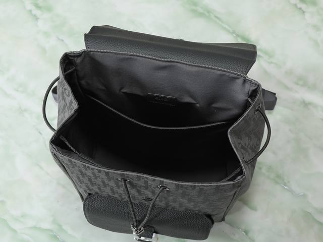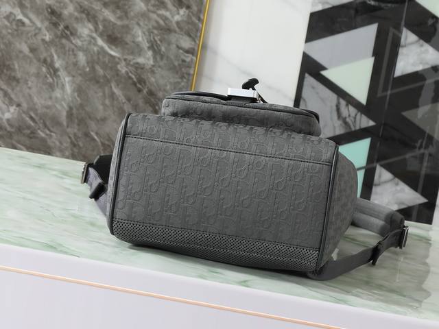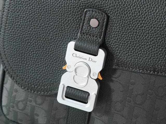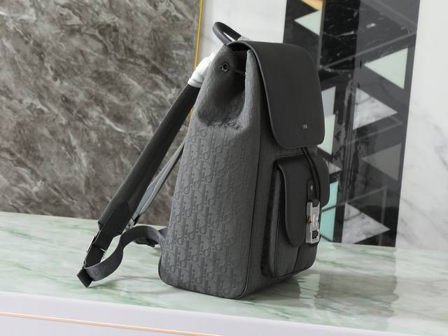This saddle flap backpack features a stylish, original design that highlights the saddle style. Crafted from charcoal grey Oblique printed canvas with a refined satin finish, it's accented with charcoal grey grained calfskin leather details and showcases the Dior logo on the front. It includes a spacious compartment for everyday essentials. The front saddle flap pocket with a contrasting aluminum buckle provides easy access to your wallet, keys, earphones, or phone. Practical and versatile, it's the perfect finishing touch to any outfit. Model: 1Adba200Jcl_H870