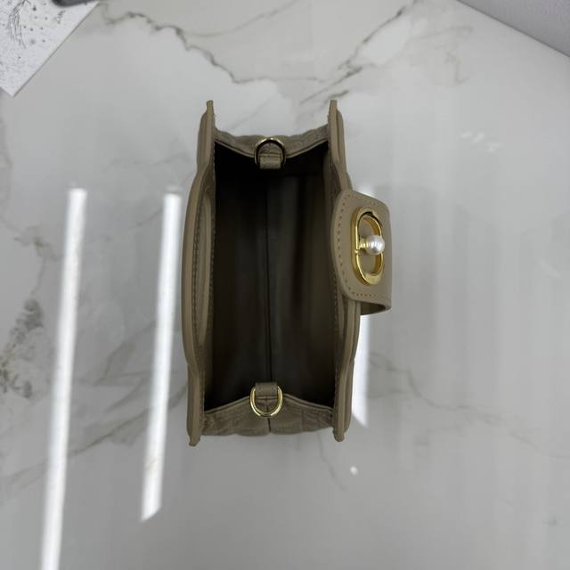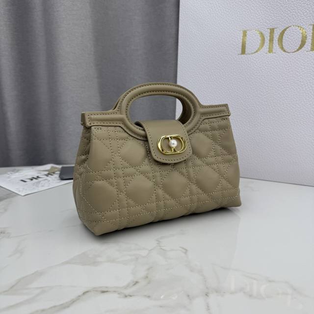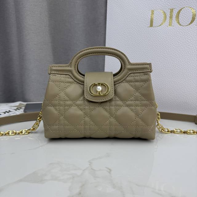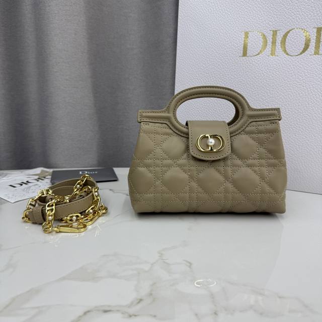 This top-quality replica Dior Jolie Top Handle mini chain handbag is a new addition to the 2026 Early Spring Ready-to-Wear collection, showcasing an elegant and practical design. Crafted from amber-colored lambskin leather with a cannage pattern, the flap is adorned with a gold-finished Cd logo and white resin beads. An interior compartment provides ample storage for everyday essentials. It features double top handles and an adjustable, detachable Cd chain shoulder strap, composed of leather strap and Cd chain links, embellished with white resin beads. It can be comfortably carried by hand, over the shoulder, or crossbody, complementing both casual and evening looks. Body: Lambskin leather Lining: Lambskin leather Magnetic flip-top closure with Cd buckle and white resin beads on the front 1 compartment Double top leather handle Adjustable, detachable chain with resin beads and leather strap Made in Italy Dimensions: 18.5 x 13 x 8.5 cm (L x H x W) Holds 1 mobile phone, 1 card holder, sunglasses, and lipstick Item Number: S3123