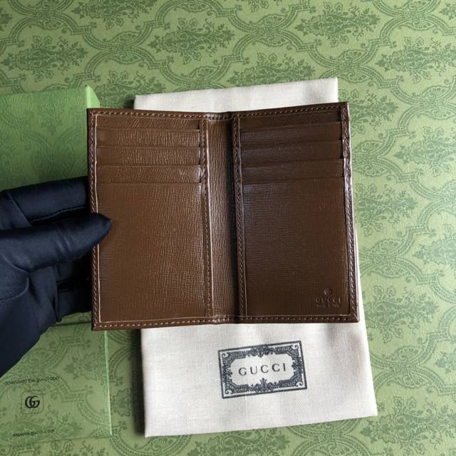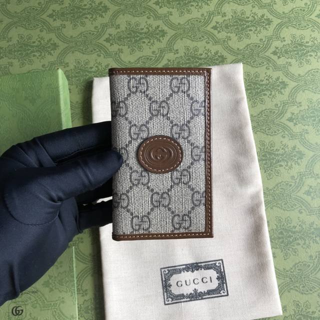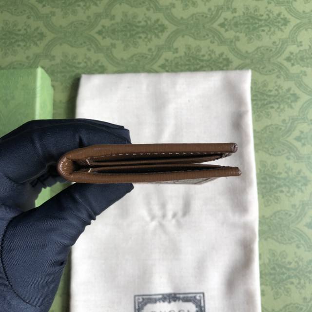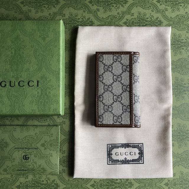 Top-of-the-line Gucci card holder with green box packaging and interlocking double G logo. Inspired by vintage travel, this pays homage to founder Guccio Gucci's work experience at the Savoy Hotel in London. The new Gucci small leather goods collection uses brown Gg Supreme canvas, injecting a fresh, modern style into this classic piece. Features include brown Gg Supreme canvas, brown leather trim, interlocking double G oval leather tag, interior: 8 card slots, 2 compartments. Model: 72 1. Closed dimensions: 7.5*12cm, open dimensions: 15*12cm. Color: Brownish brown, acrylic.