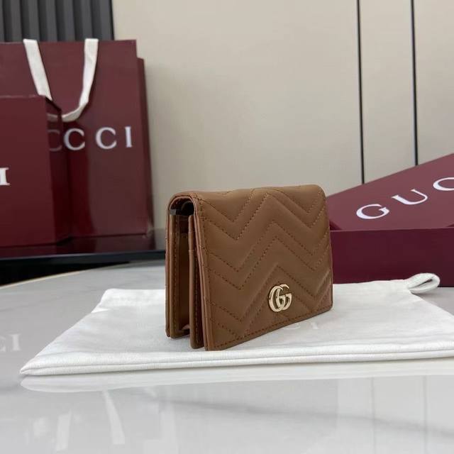 / Top-of-the-line new Gg Marmont mini wallet crafted from brown V-shaped Matelass