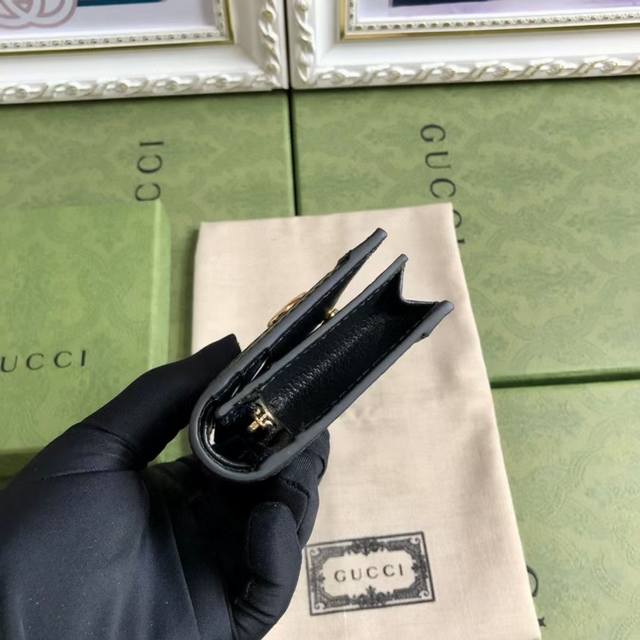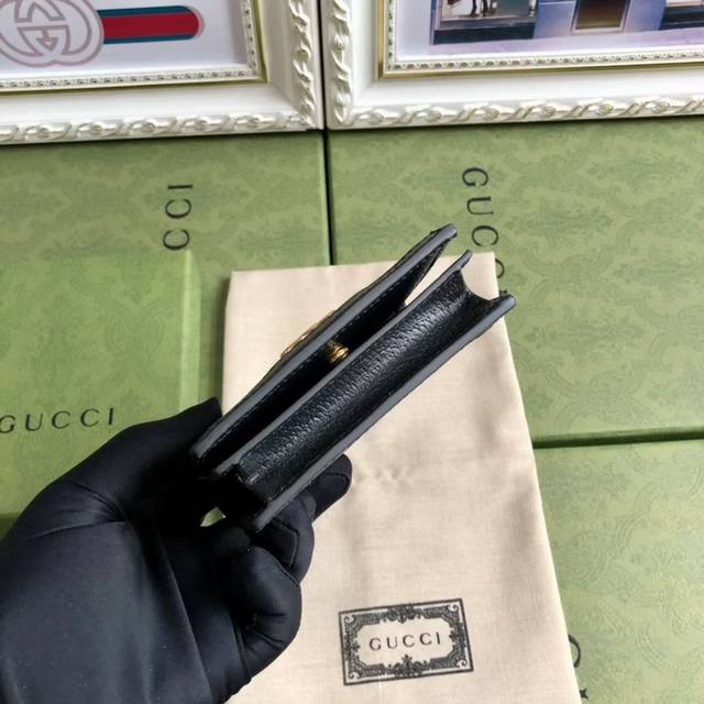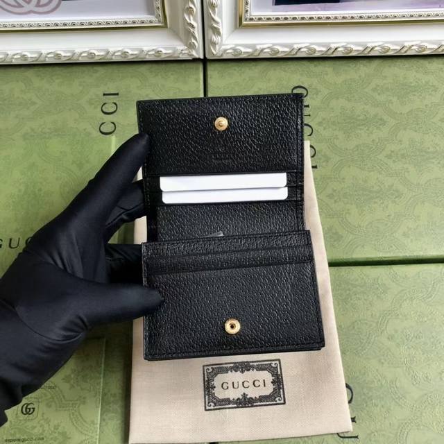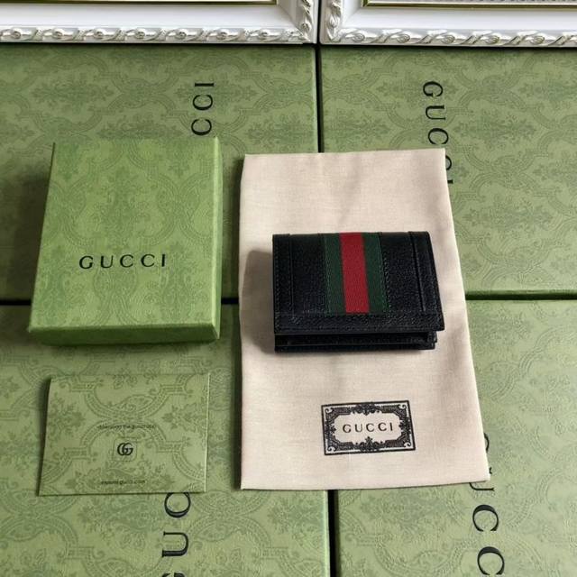 Top-of-the-line Ophidia series small cardholder wallet is made of G premium imported cowhide, featuring the iconic pattern and striped webbing, and crafted with top-quality overseas hardware. Model : 523155. Color: Black full leather. Dimensions: W11Xh5Xd3Cm