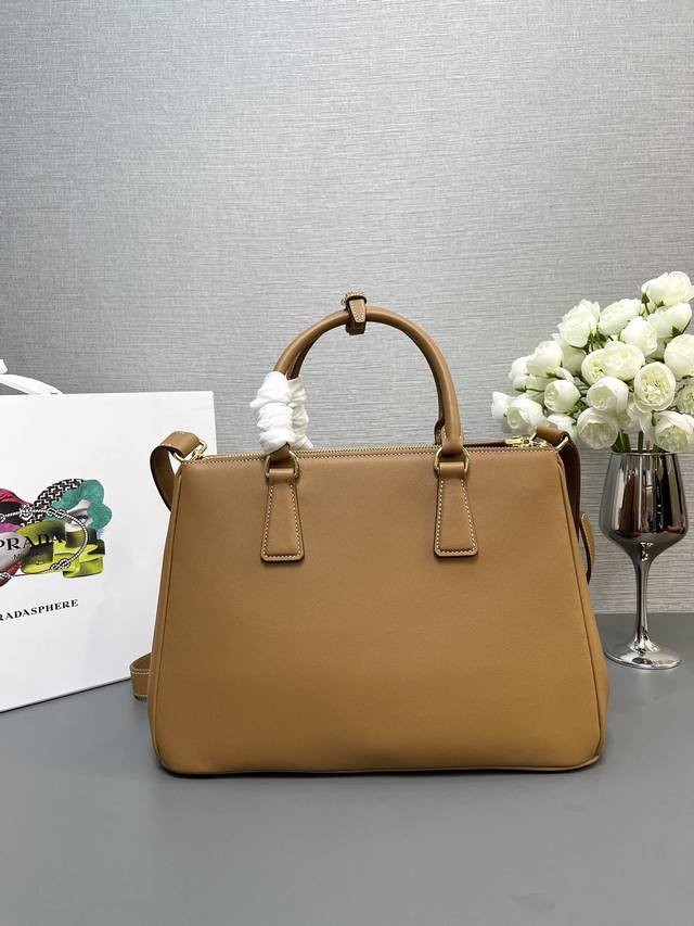 Top-quality original 1Ba274 plain leather new Saffiano leather bag, original quality, double leather handles, detachable and adjustable leather shoulder strap, gold-plated hardware, detachable leather key ring, triangular leather with metal engraved logo, side snap closure, two zippered exterior pockets, three interior pockets including one zippered pocket, soft lambskin lining, leather feet. Model: 1Ba274, OEM code 165, dimensions: 32