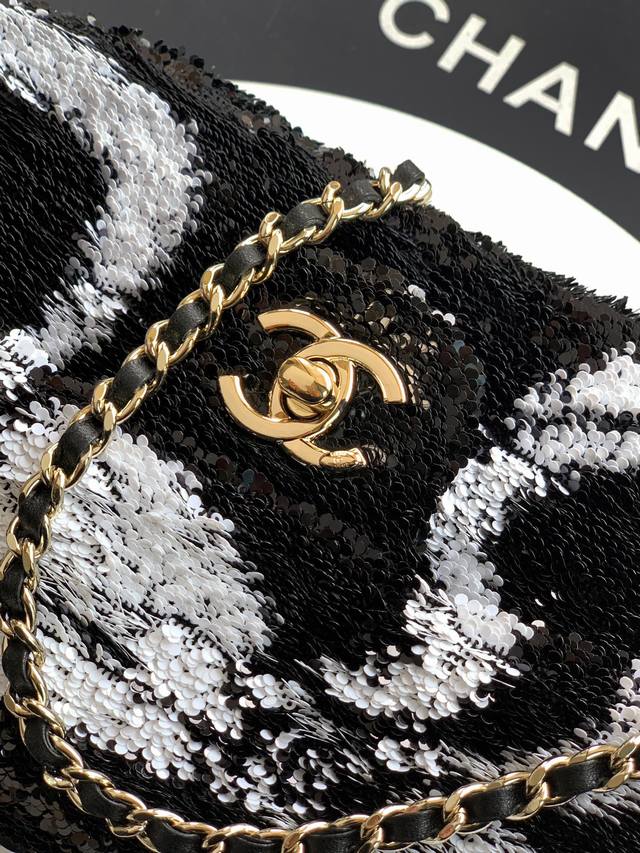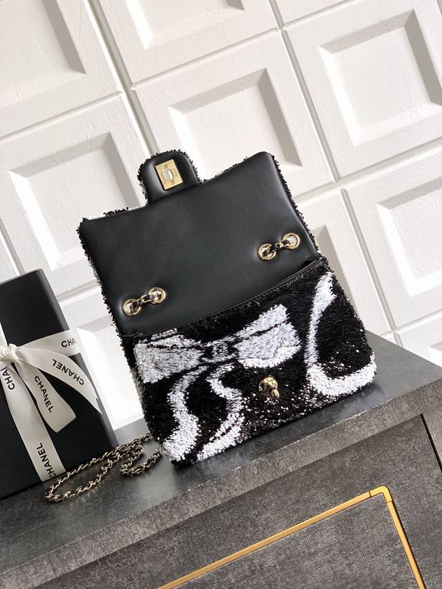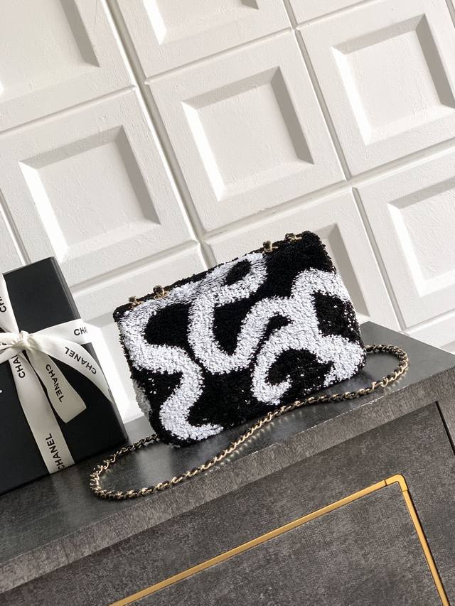 Top-quality original black and white butterfly sequined Ohanel 25K heavyweight high-end handmade workshop embroidery dense sequins, CF super shiny sequined beaded bag available for pre-order! Autumn/Winter filter, So Black, super cool and eye-catching! The actual product is absolutely stunning! A super rare and popular sequined bag with excellent value for money. The most worthwhile bag to buy this season! The color features a combination of flower sequins, sparkling and adorable, infinitely amplifying its charm. Elegance, fashion, and trendiness are its hallmarks. It's also suitable as an evening bag. A bag you can cherish for a lifetime. 20cm