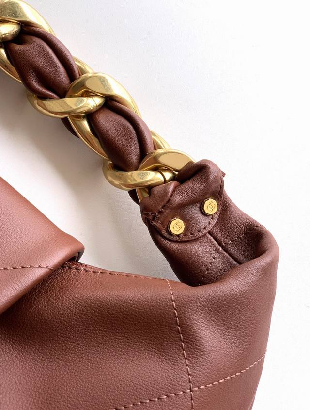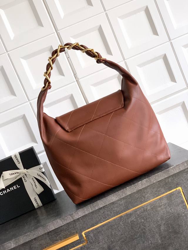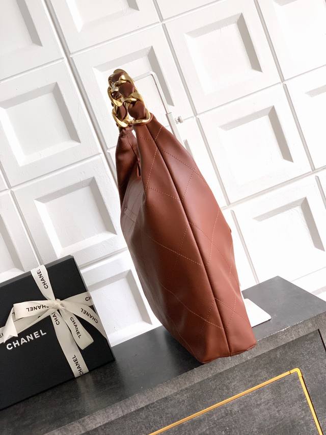 Top-quality original burgundy small size: 35 X47 X9Cm Ohanel 25K hippie Hobo bag! A Fall/Winter runway Hobo Maxi bag exuding confidence and unisex style. The glossy calfskin is "delicate and soft," the Hobo shape is "laid-back," and the chunky chain adds a "cool" touch. Effortlessly stylish, it's perfect for both work commutes and casual outings. The double C clasp subtly shines, and the spacious interior is perfect for commuting and can even hold an iPad! Size: 35 X47 X9Cm