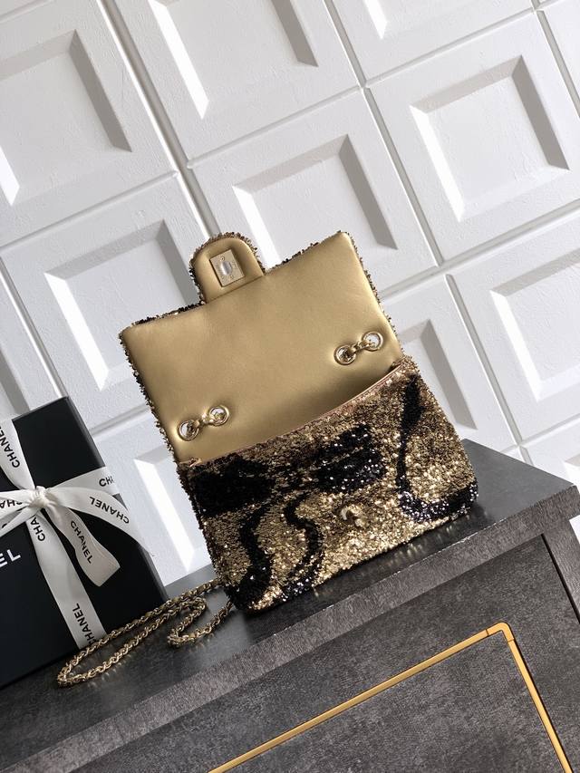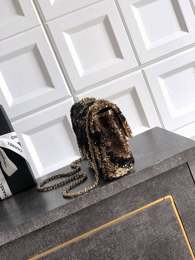 Top-quality original champagne gold butterfly sequined Ohanel 25K heavyweight high-end handmade workshop embroidery dense sequins, CF super shiny sequined beaded bag available for pre-order! Autumn/Winter filter, So Black, super cool and eye-catching! The actual product is absolutely stunning! A super rare and popular sequined bag with excellent value for money. The most worthwhile bag to buy this season! The color features a combination of flower sequins, sparkling and adorable, infinitely amplifying its charm. Elegance, fashion, and trendiness are its hallmarks. It's also suitable as an evening bag. A bag you can cherish for a lifetime. 20cm