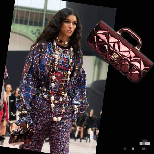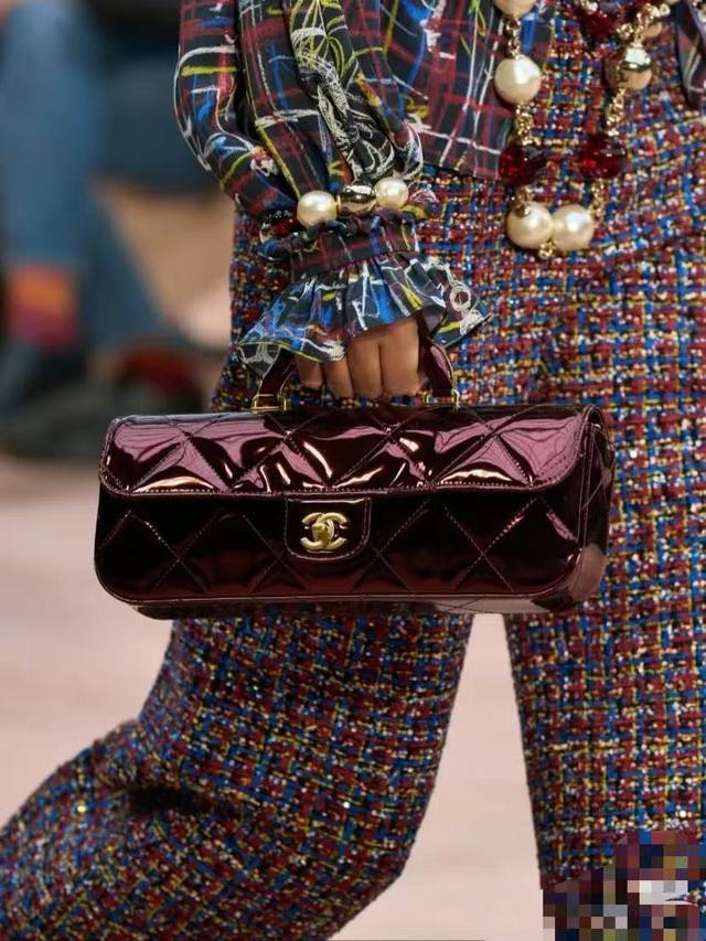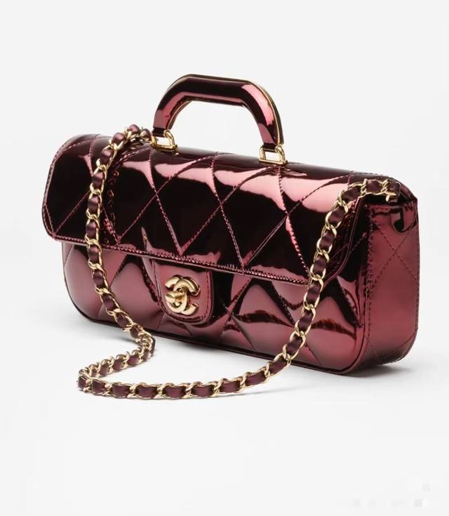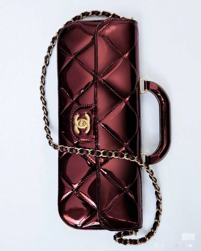 Top-quality original coffee-burgundy large-size Ohanel flap bag, 25K runway style, gold patent leather handle. The patent leather mirror material is truly eye-catching, like a Sailor Moon bag, radiating its own light, combining sweetness and coolness! The capacity is also very ample. This patent leather CF practical star bag definitely deserves a mention! Dimensions: 12 x 29 x 5 cm.