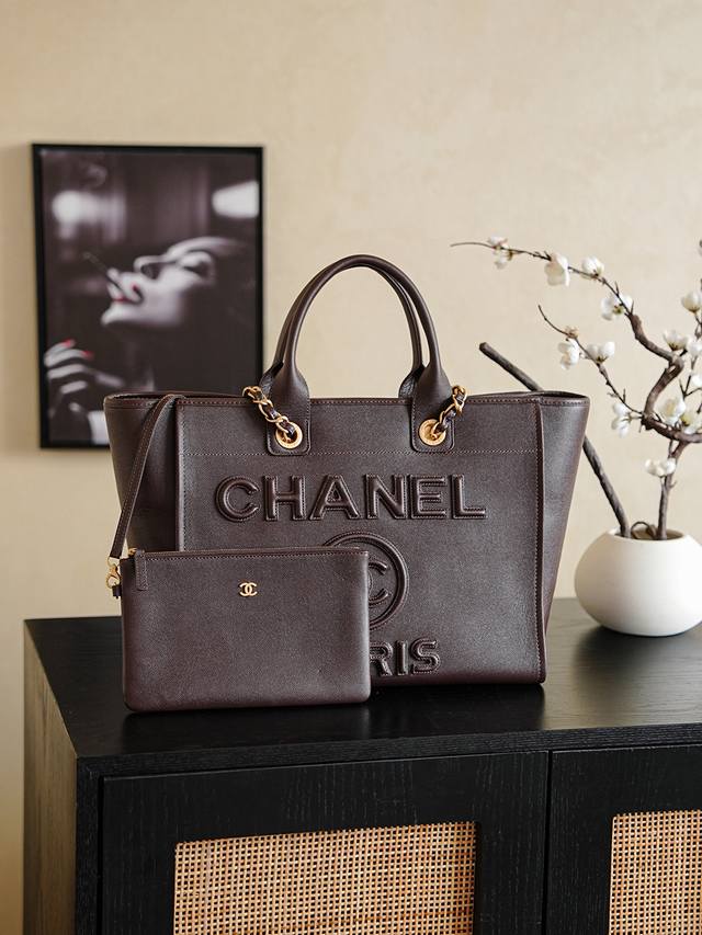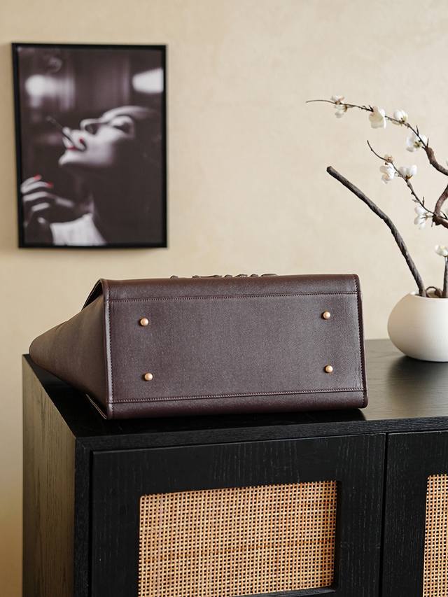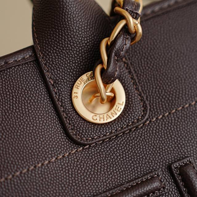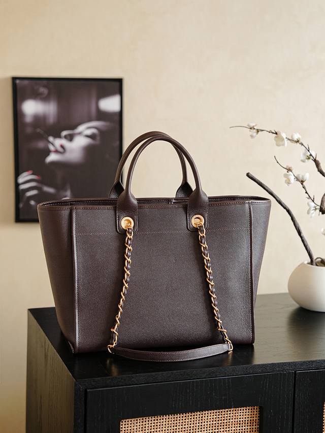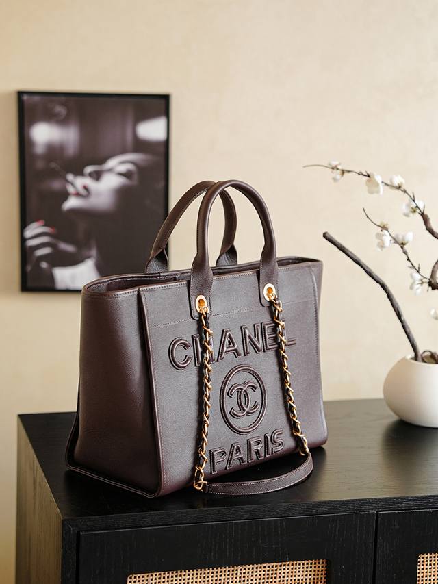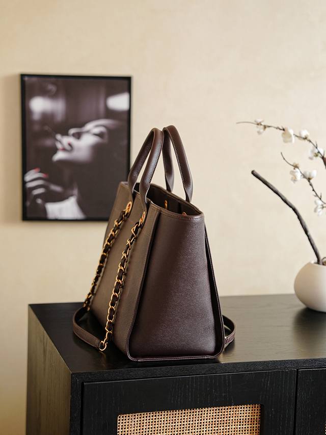 Top-quality original coffee-colored spherical pattern 25K shopping bag/beach bag. The bag's design and packaging elements give it a very stylish feel