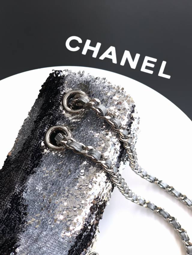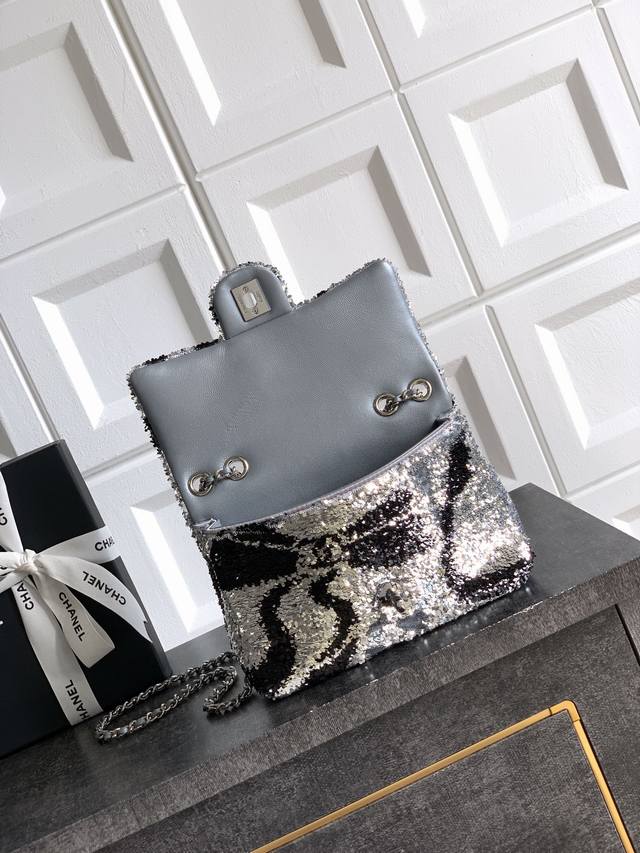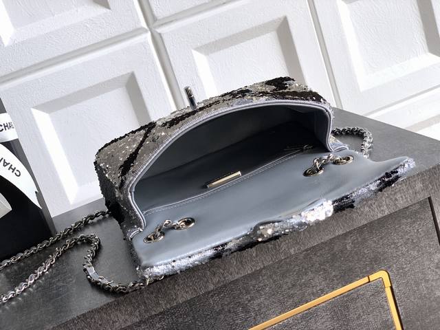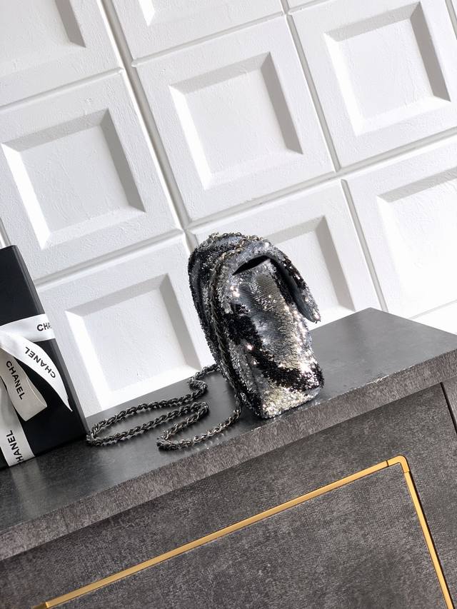 Top-quality original grey-black butterfly sequined Ohanel 25K heavyweight high-end handmade workshop embroidery dense sequins, CF super shiny sequined beaded bag available for pre-order! Autumn/Winter filter, So Black, super cool and eye-catching! The actual product is absolutely stunning! A super rare and popular sequined bag with excellent value for money. The most worthwhile bag to buy this season! The color features a combination of flower sequins, sparkling and adorable, infinitely amplifying its charm. Elegance, fashion, and trendiness are all synonymous with this bag. It's also suitable as an evening bag. A bag you can cherish for a lifetime. 20cm