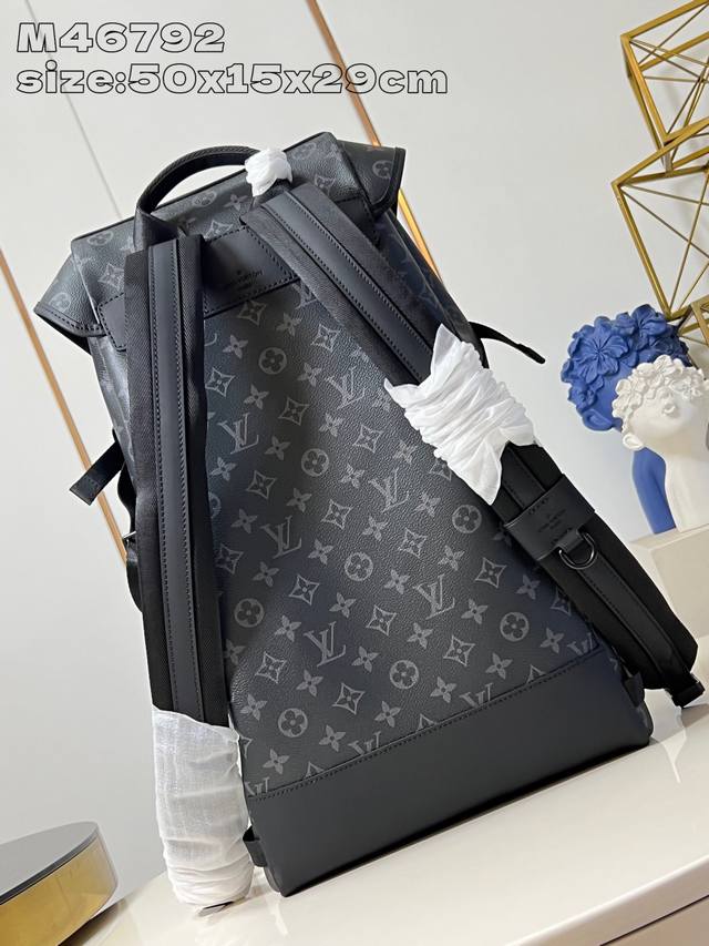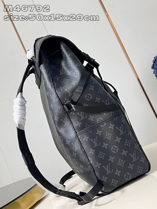 Top-quality original, individual seller, real photos. This Getaway backpack (M46792, black floral print) captures the vibrant style of outdoor sports, crafted from Monogram Eclipse canvas for a soft and comfortable fit. The top flap features an LV logo quick-release buckle, complemented by a spacious main compartment and multiple exterior pockets, offering a stylish choice for travel or everyday outings. 50 x 15 x 29 cm (H x W x Length). Note: This item is too large and does not come with packaging.