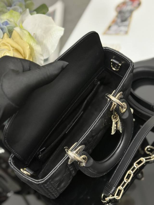 Top-quality original Lady D-Joy small lambskin leather with diamond buckle, featuring a lambskin lining and meticulously crafted from cannage-stitched lambskin leather. The light gold-plated " DIOR" diamond buckle adds a touch of elegance and dynamism to the refined silhouette. It comes with a detachable chain shoulder strap and an adjustable, detachable leather shoulder strap, allowing for hand-carrying, shoulder-carrying, or crossbody wear