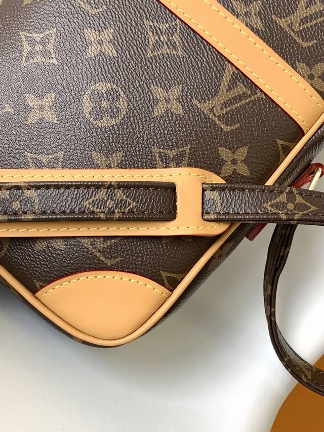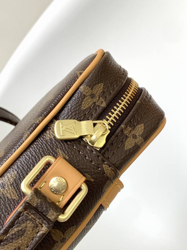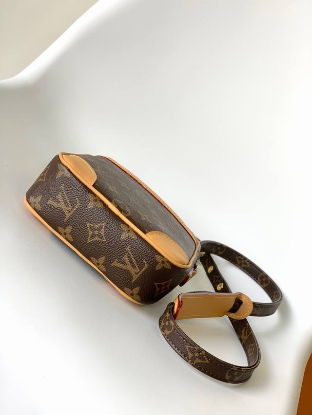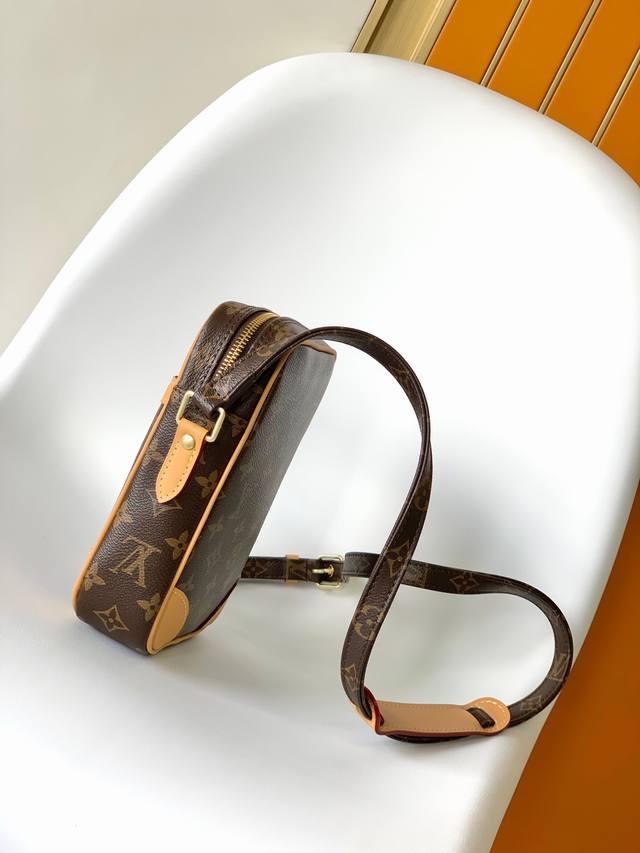 Top-quality original M45266 Classic crossbody bag with color-changing leather patch, vintage floral pattern, yellow leather shoulder strap, men's messenger bag/camera bag, with shoulder strap, can be worn crossbody! Dimensions 15