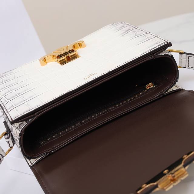 Top-quality original, new boutique style, genuine product development, top-tier original goods, real photos, model: 188424, size: 18.5X14X6Cm, material: exclusive custom crocodile-patterned cowhide. The entire bag is very high-end, simply exquisite. The Himalayan white crocodile pattern, paired with the Arc de Triomphe hardware on the front, is both high-end and fashionable. It's a great choice for sisters who love crocodiles, both tasteful and unique!