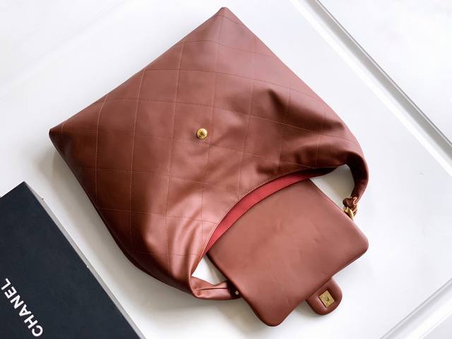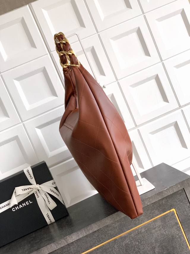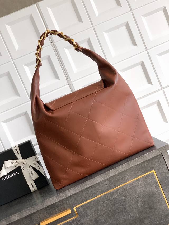 Top-quality original Ohanel 25K wine red oversized hippie Hobo bag! A Fall/Winter runway Hobo Maxi bag exuding confidence and unisex style. The glossy calfskin is "delicate and soft," the Hobo shape is "laid-back," and the chunky chain adds a "cool" touch. Effortlessly stylish, it's perfect for both work and casual outings. The double C clasp subtly shines, and the spacious interior is perfect for commuting and can even hold an iPad! Dimensions: 43X53X9Cm