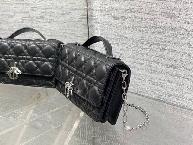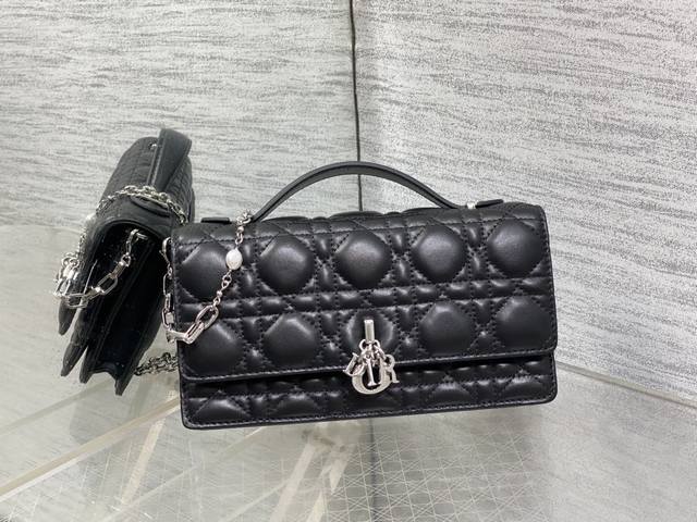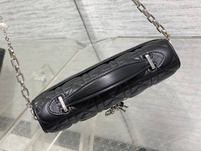 Top-quality original single item with full packaging. Black and silver in stock. Latest pearl chain clutch from the boutique, featuring the iconic cannage pattern and classic letter charm.
