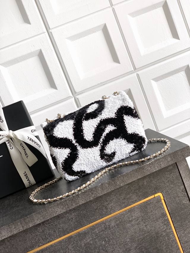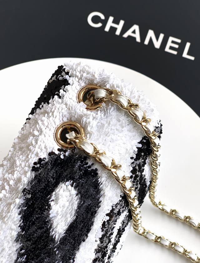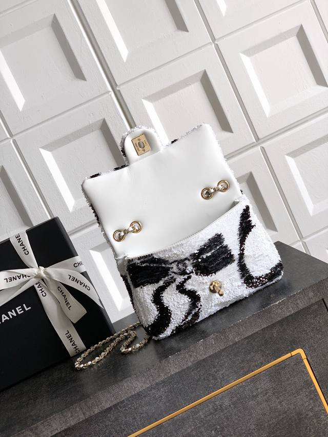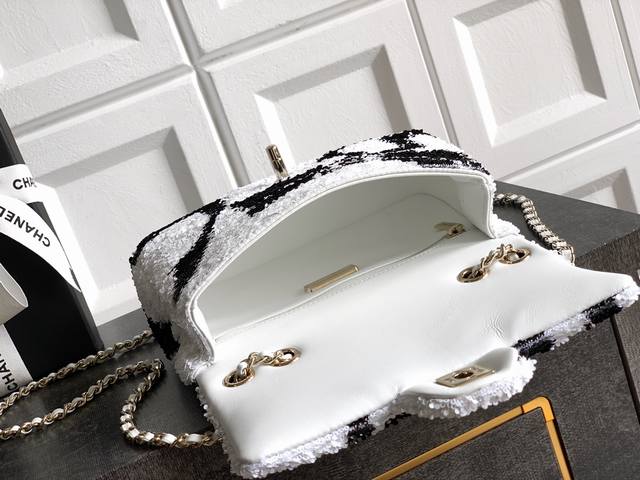 Top-quality original single white and black butterfly sequined Ohanel 25K heavyweight high-end handmade workshop embroidery dense sequins, CF super shiny sequined beaded bag available for pre-order! Autumn/Winter filter, So Black, super cool and eye-catching! The actual product is absolutely stunning! A super rare and popular sequined bag with excellent value for money. The most worthwhile bag to buy this season! The color features a combination of flower sequins, sparkling and adorable, infinitely amplifying its charm and temperament. Elegance, fashion, and trendiness are all synonymous with this bag. It's also suitable as an evening bag. A bag you can cherish for a lifetime. 20cm