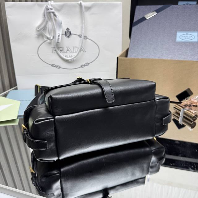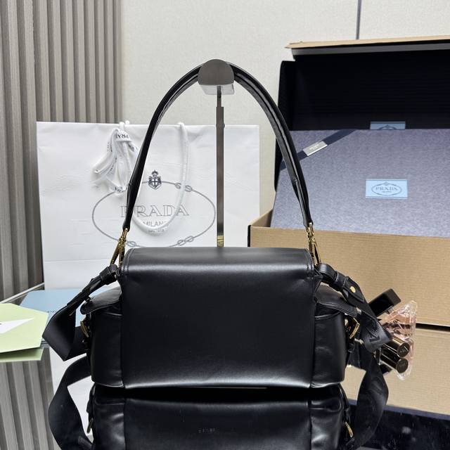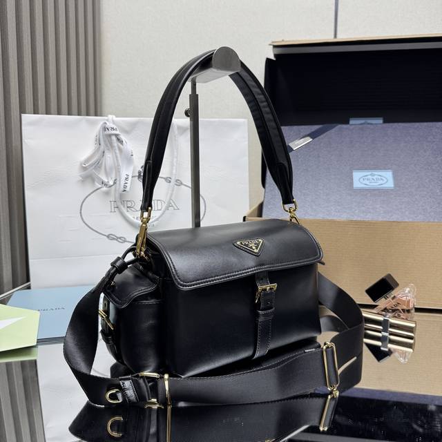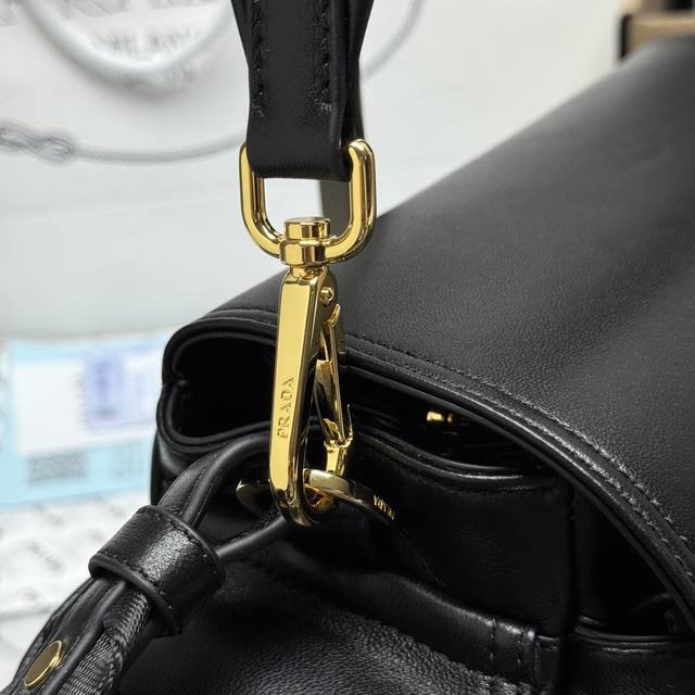 Top-quality original single-item new messenger bag 1Bd394 lambskin black arrived. This handbag perfectly blends sophistication and functionality, made of imported lambskin. It features a soft silhouette and multiple pockets. The lightweight and practical design combines sporty and versatile elements, adorned with an enamel triangular metal logo and leather details. It comes with two detachable shoulder straps, has a large capacity, and is simply perfect. Another timeless and popular style, large size, unisex, grab yours now! Dimensions: Length 30cm x Height 14cm x Base 10cm.
