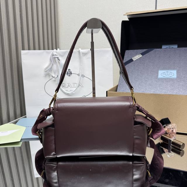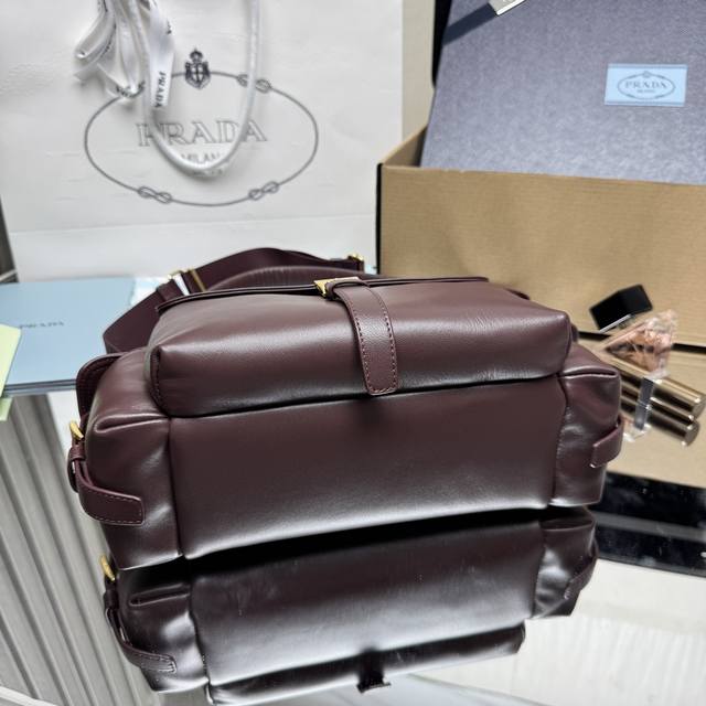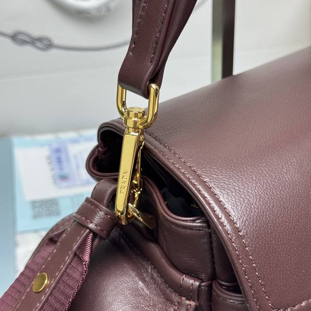 Top-quality original single-item new messenger bag 1Bd394 lambskin burgundy arrived. This handbag perfectly blends sophistication and functionality, made of imported lambskin. It features a soft silhouette and multiple pockets. The lightweight and practical design combines sporty and versatile elements, adorned with an enamel triangular metal logo and leather details. It comes with two detachable shoulder straps, has a large capacity, and is simply perfect. Another timeless and popular style, large size, unisex. Grab yours now! Dimensions: Length 30cm x Height 14cm x Base 10cm.