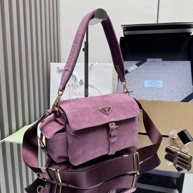 Top-quality original single-piece new messenger bag 1Bd394 suede. This handbag perfectly blends sophistication and functionality. Made of imported suede with a soft silhouette, it features multiple pockets. The lightweight and practical design combines sporty and versatile elements, adorned with an enamel triangular metal logo and leather details. It comes with two detachable shoulder straps, has a large capacity, and is simply perfect. Another timeless and popular style, large size, unisex. Grab yours now! Dimensions: Length 30cm x Height 14cm x Base 10cm.
