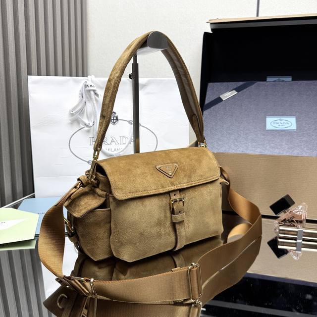 Top-quality original single-piece new messenger bag 1Bd394 suede. This handbag perfectly blends sophistication and functionality. Made of imported suede with a soft silhouette, it features multiple pockets. The lightweight and practical design combines sporty and versatile elements, adorned with an enamel triangular metal logo and leather details. It comes with two detachable shoulder straps, has a large capacity, and is simply perfect. Another timeless and popular style, large size, unisex. Grab yours now! Dimensions: Length 30cm x Height 14cm x Base 10cm.