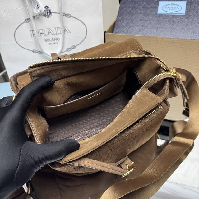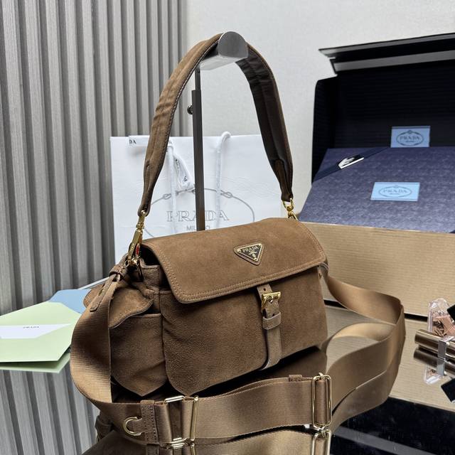 Top-quality original single-piece new messenger bag 1Bd394 suede. This handbag perfectly blends sophistication and functionality. Made of imported suede with a soft silhouette, it features multiple pockets. The lightweight and practical design combines sporty and versatile elements, adorned with an enamel triangular metal logo and leather details. It comes with two detachable shoulder straps, has a large capacity, and is simply perfect. Another timeless and popular style, large size, unisex. Grab yours now! Dimensions: Length 30cm x Height 14cm x Base 10cm.
