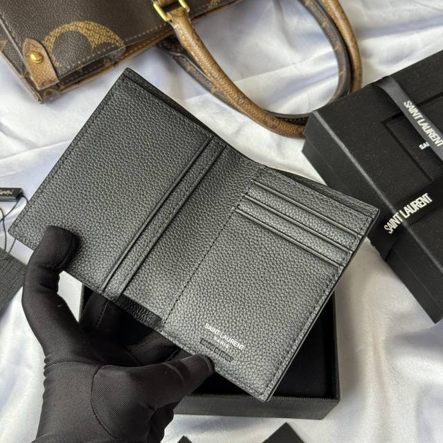 single-fold wallet, adorned with small pebbled calfskin embossed with Lecassandre lettering.