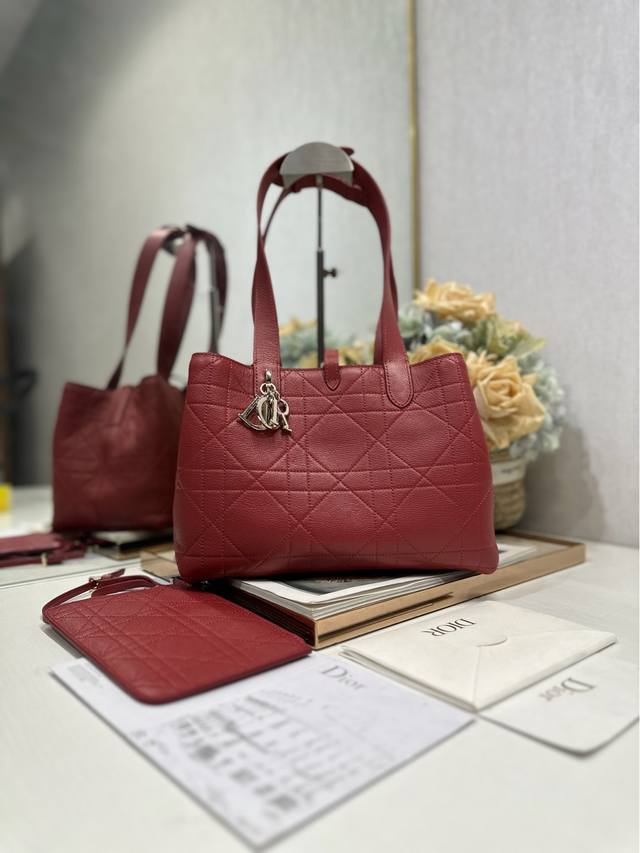 Top-quality replica Dior Toujours handbag (Burgundy Goat's Blood Medium) This Dior Toujours handbag made a stunning debut at the Spring/Summer 2023 fashion show, featuring a unique blend of casual and practical design. Crafted from burgundy pebbled calfskin leather with oversized cannage stitching, its spacious interior compartments and small pouches offer neat organization for everyday essentials. It also features a Cd Lock with a D-shaped knob closure, adjustable sides for added style, and adjustable leather handles for easy carrying. Features include a Cd Lock, drawstring closure, Dior charm, detachable interior pouches, adjustable leather handles, and a dust bag. Model: 1188 Dimensions: 28.5 x 19 x 21.5 cm