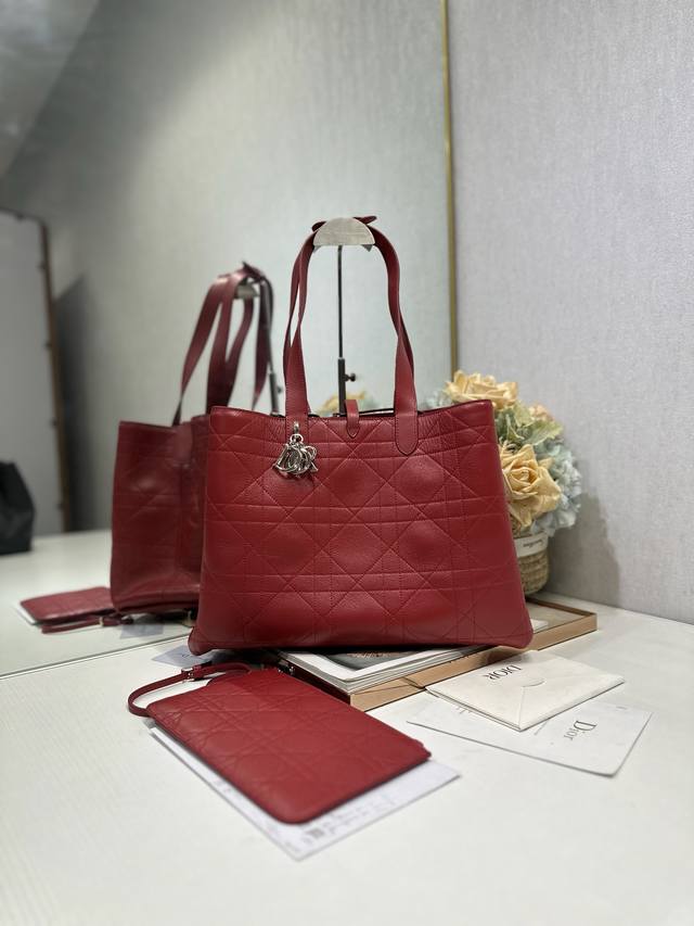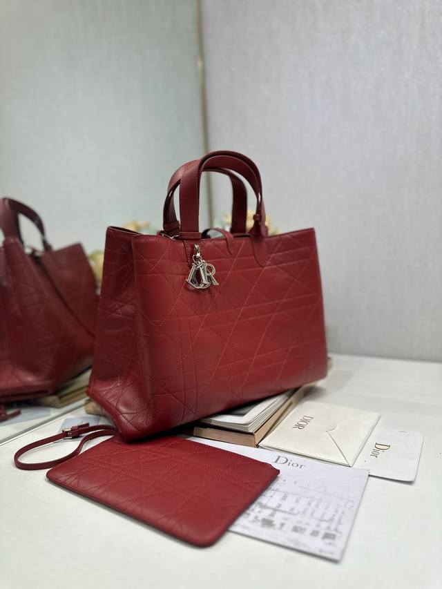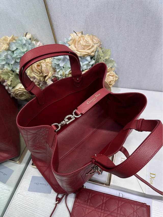 Top-quality replica Dior Toujours handbag (Large, Burgundy, Goat's Blood Texture) This Dior Toujours handbag made a stunning debut at the Spring/Summer 2023 fashion show, boasting a unique blend of casual and practical design. Crafted from meticulously selected burgundy pebbled calfskin leather, it features oversized cannage stitching and a spacious interior with compartments and small pockets for neatly organizing everyday essentials. It has a leather drawstring closure for secure storage, and a Cd Lock dial closure with adjustable sides for added style. The large size includes adjustable leather handles for hand-carrying or shoulder carrying. DIOR charm with lock and drawstring closure, removable internal pocket, adjustable leather handle, includes dust bag. Model: 1188. Dimensions: 37 x 20 x 28.5 cm. Handle length: 14 x 29 cm.