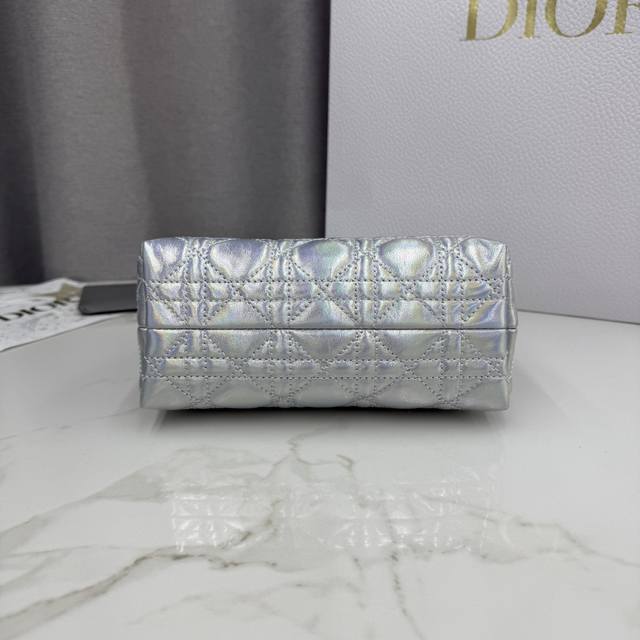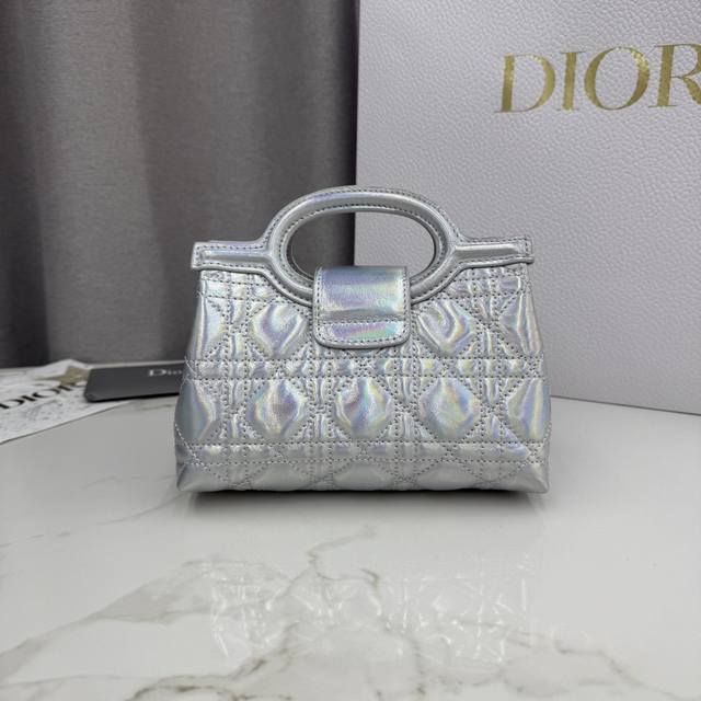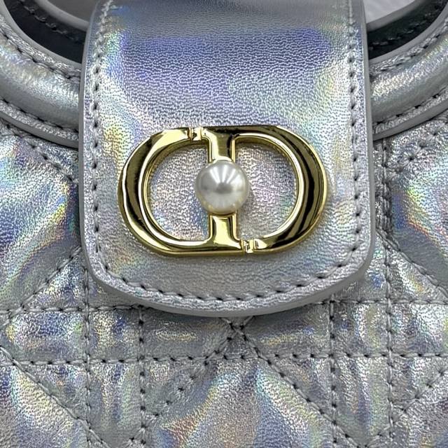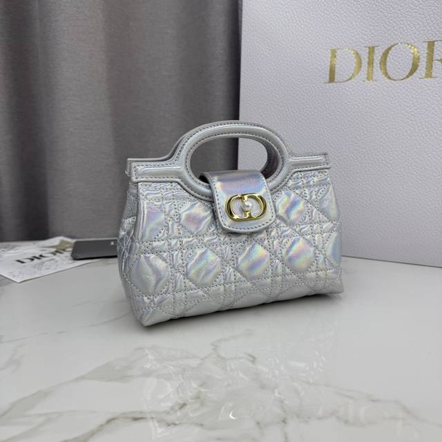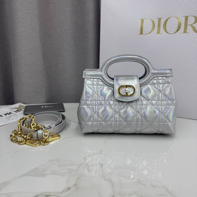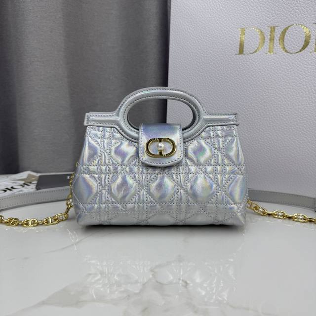 Top-quality replica of the Dior Jolie Top Handle mini chain handbag, a new piece from the 2026 Early Spring Ready-to-Wear collection, presents an elegant and practical design. Crafted from silver lambskin leather with a cannage pattern, the flap is adorned with a gold-finished metal Cd logo and white resin beads. An interior compartment provides ample storage for everyday essentials. It features double top handles and an adjustable, detachable Cd chain shoulder strap, composed of leather strap and Cd chain links, embellished with white resin beads. Comfortable to carry by hand, over the shoulder, or crossbody, it pairs well with both casual and evening looks. Body: Lambskin leather Lining: Lambskin leather Magnetic flip-top closure with Cd buckle and white resin beads on the front 1 compartment Double top leather handle Adjustable, detachable chain with resin beads and leather strap Made in Italy Dimensions: 18.5 x 13 x 8.5 cm (L x H x W) Holds 1 mobile phone, 1 card holder, sunglasses, and lipstick Item Number: S3123
