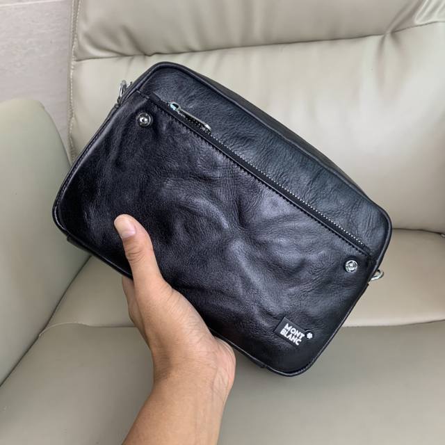 Top-tier boutique items, the latest hot-selling Montblanc clutch and shoulder/crossbody bag, universal style, are now available in large quantities! Those who claim to be boutique-quality or top-tier originals won't just talk the talk; let the quality speak for itself. Styles can be copied, but the materials and craftsmanship can't fool those in the know. Made entirely of top-quality materials, including premium imported Italian calfskin, ultra-high-definition hardware with the logo, boutique hardware, boutique lining, dedicated YKK zipper pulls, super-smooth imitation snap zippers, top-quality edge finishing, a unique leather design created by a top designer, extra-large capacity with multiple compartments, phone slot + concealed zipper, super comfortable and soft feel, wear-resistant leather with clear texture, five stitches per inch by top craftsmen, the quality is impeccable, unique, sophisticated and elegant. Top-notch workmanship, meticulous attention to every detail! Color: Black Model: 8 6-3 Size: 27-18-6