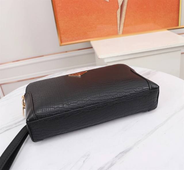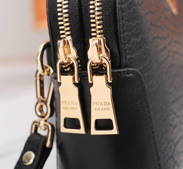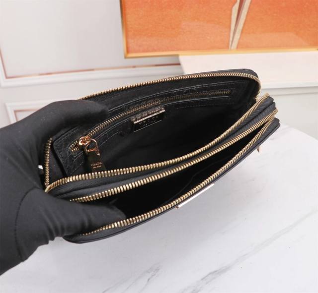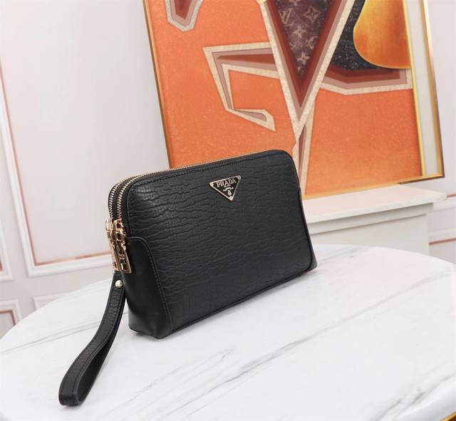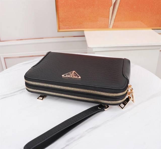 Top-tier boutique quality, high-end, hottest Prada double-zipper imported top-grain cowhide clutch bag! Large quantities available now! We don't just boast about being boutique quality or top-tier original; let the quality speak for itself. Styles can be copied, but materials and craftsmanship can't fool those in the know. Made with top-quality materials inside and out: top-grade imported Italian calfskin embossed leather with ultra-high-definition hardware logo, high-end hardware, special high-grade pure cotton lining, special YKK zipper pulls, anti-bursting zippers that become smoother with use, top-grade edge finishing, unique imported top-grain cowhide embossed leather style designed by top designers, extra-large capacity with multiple compartments, phone slot + concealed zipper, super comfortable, soft and wear-resistant leather with clear texture, five stitches per inch by top craftsmen, the texture is impeccable, unique, sophisticated and elegant. Top-notch workmanship, meticulous attention to every detail! Color: Black, Model: 8377-4, Size: 23*14*5 mm