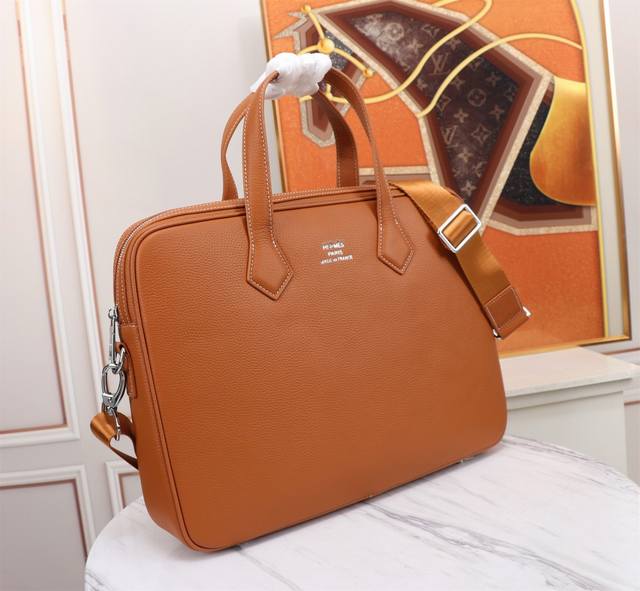 Top-tier boutique quality, the latest hot-selling Hermes leather handbag/briefcase is now available in large quantities! We don't just boast about being boutique quality or top-tier original; let the quality speak for itself. Styles can be copied, but materials and craftsmanship can't fool those in the know. Made entirely of top-quality materials, including premium imported Italian calfskin with ultra-high-definition embossed logo, boutique hardware, exclusive lining, exclusive YKK zippers, ultra-smooth anti-bursting zippers, top-quality edge finishing, unique leather texture and color blocking with white stitching designed by top designers, extra-large capacity with multiple compartments, phone slot + concealed zipper, super comfortable, soft, and durable leather with clear texture, crafted by top-notch craftsmen with five stitches per inch. The quality is impeccable, unique, and exudes sophistication. Exquisite craftsmanship with attention to every detail! Available in 3 colors: black, blue, and tan. Model: 8379-1. Size: 39*29*8.
