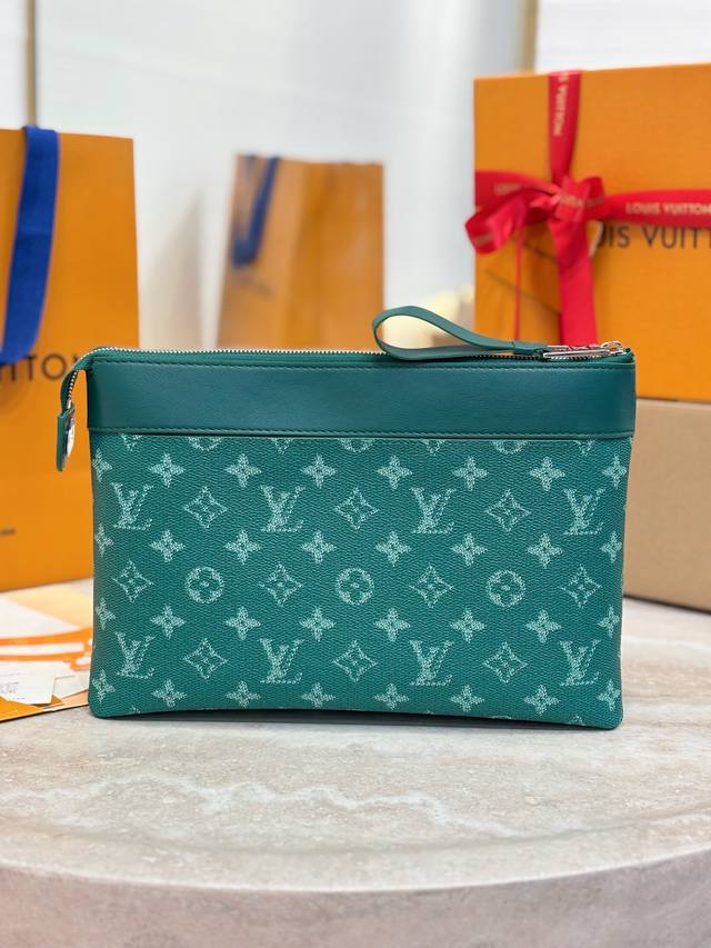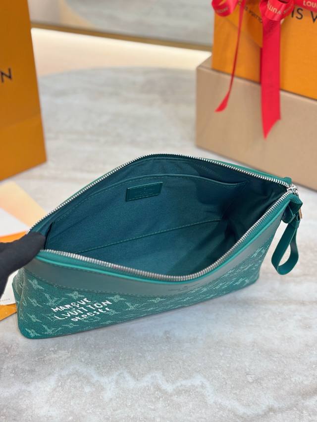 Top-tier original M12665 Green Pochette Voyage Souple Clutch. This Pochette Voyage Souple clutch is crafted from soft Monogram Eclipse coated canvas, featuring rounded lines that echo the classic Pochette Voyage clutch design for a comfortable and convenient carrying experience. Its slim profile includes a zippered compartment and a magnetic snap back pocket. Size: 32 x 21 x 8 cm.