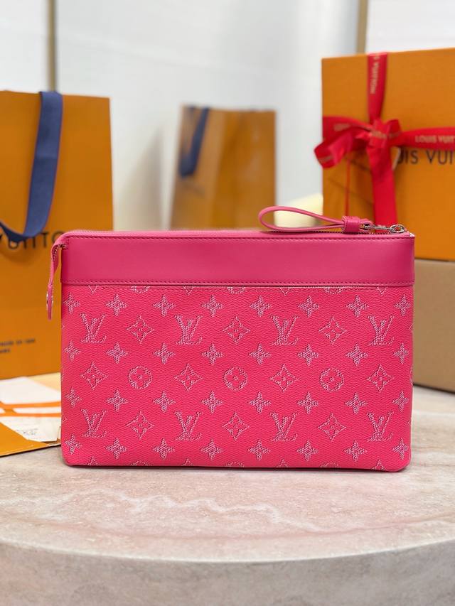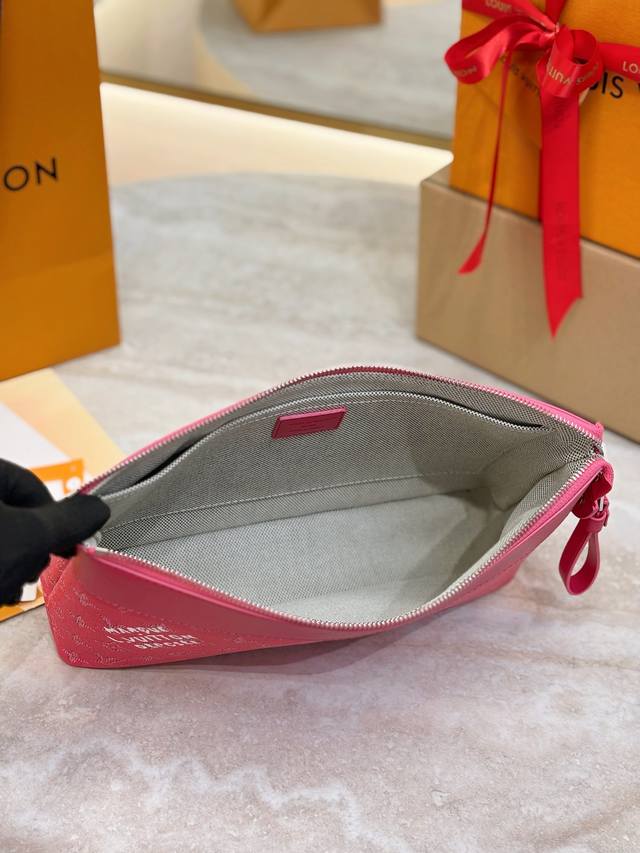 Top-tier original M12665 Rose Red Pochette Voyage Souple Clutch. This Pochette Voyage Souple clutch is crafted from soft Monogram Eclipse coated canvas, featuring rounded lines that echo the classic Pochette Voyage clutch design, offering a comfortable and convenient carrying experience. Its slim profile includes a zippered compartment and a magnetic snap back pocket. Size: 32 x 21 x 8 cm.