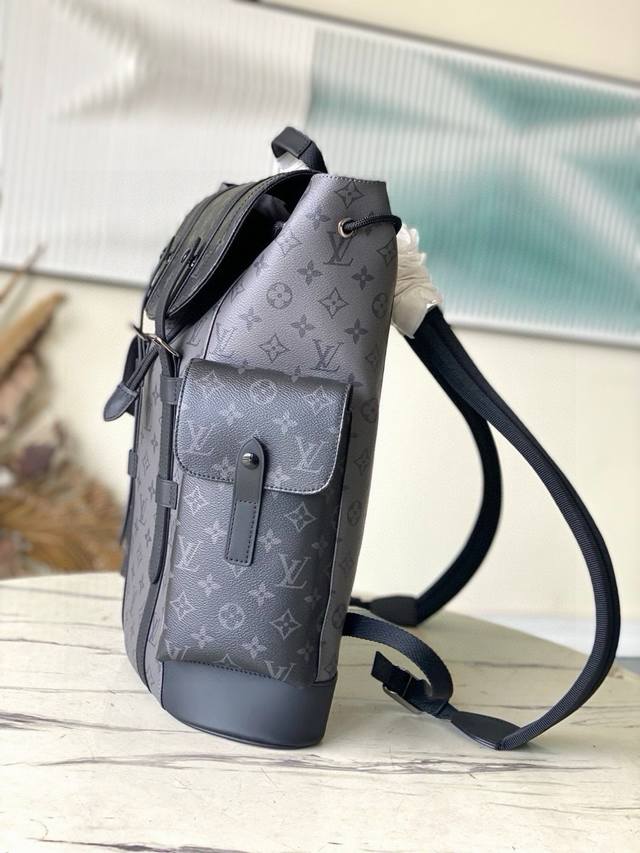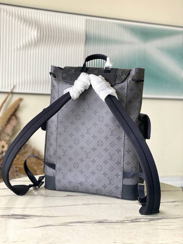Top-tier original M45419 Silver Christopher backpack, crafted from Monogram canvas, embodies the rugged and simple spirit of a hiking bag. Its distinctive design makes it suitable for both work and leisure, showcasing a high-quality lifestyle. Dimensions: 41 x 47 x 13 cm.