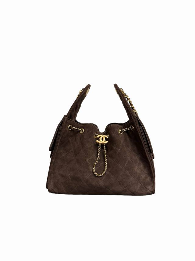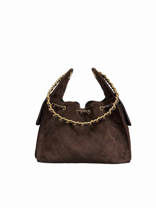 Top-tier original Ohanel 25K in a new coffee suede color! Definitely the hottest item this season, it became incredibly popular as soon as it hit the runway. Street style silhouette + super spacious capacity, instantly transforming you into a fashion blogger! The side cargo pockets give off a chic urban vibe, guaranteeing you'll turn heads wherever you go! The drawstring bucket Hobo small size is now available! | Real photos show its stunning design! A cool and stylish bucket shape with impressive capacity! It looks delicate but is actually made of calfskin, and the adjustable drawstring design is very practical. Two small side pockets, a perfect size, and it exudes style. A must-have for cool girls, I absolutely love it! Small size 30
