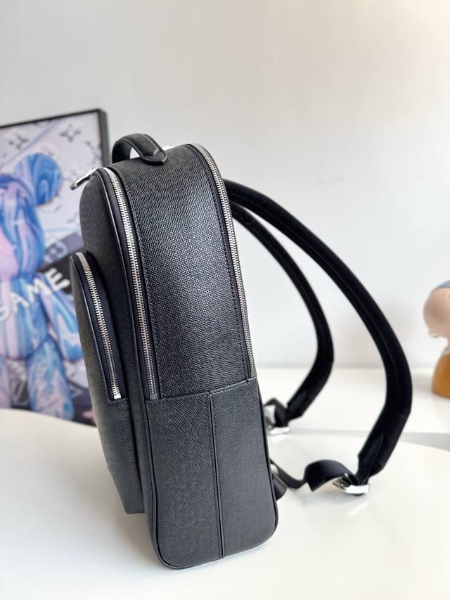 Top-tier original quality, chip version, semi-steel hardware M30977 - Exclusive real photos! The Avenue backpack is made of Taga leather with cowhide trim and metal hardware, blending practicality with elegant style. The main compartment features spacious pockets and padded compartments at the front and back, while the interior pockets allow for organized storage. Dimensions: 40