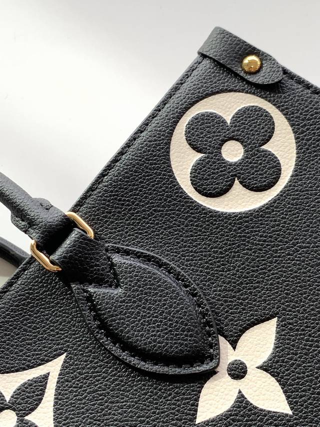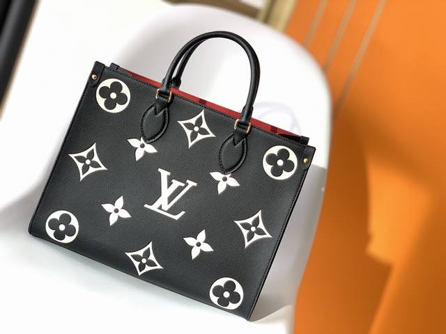 Top-tier original single dynamic chip Onthego medium handbag M45494 almond print 45495 black print 45496 white print Monogram pattern printed and embossed on soft and supple grained cowhide. Its spacious interior can hold laptops, computers, and other office supplies. It features long and short handles for easy hand or shoulder carrying. Size: 34X26X13Cm.