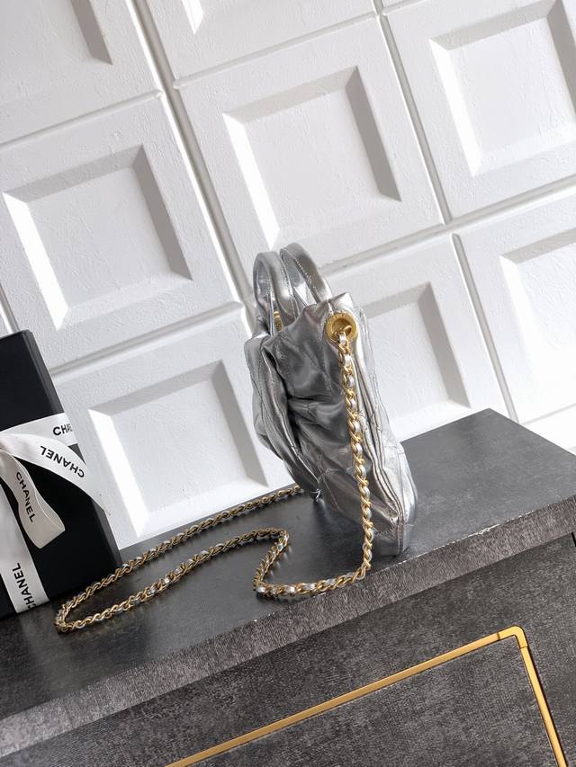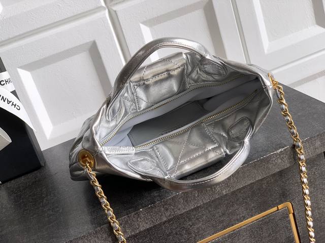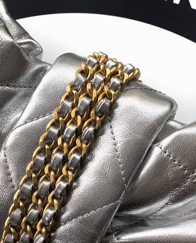 Top-tier original small size Ohanel bow bag in shimmering silver. Design and style analysis: Diverse materials, ever-changing styles, and a rich variety of material choices: In addition to denim, there is also a black original Antiba waxed lambskin version, with superior texture, natural luster, clear and layered surface texture. Compared with traditional lambskin, it can effectively prevent scratches and also has a certain degree of water resistance, allowing the bag to maintain its perfect condition in various environments. Practical aesthetics, everyday elegance. Despite its charming and exquisite appearance, practicality and capacity are perfectly balanced. The interior space is reasonably designed to accommodate mobile phones, keys, cosmetics, etc. The bag's size is moderate, neither too large and bulky nor too small and unusable, making it an ideal choice for modern women's daily outings or evening banquets. Whether paired with casual wear or formal dresses, it can easily enhance the overall sophistication of the look. Brand heritage, modern interpretation! Size: 18X26X5Cm