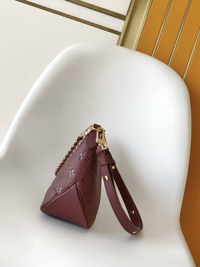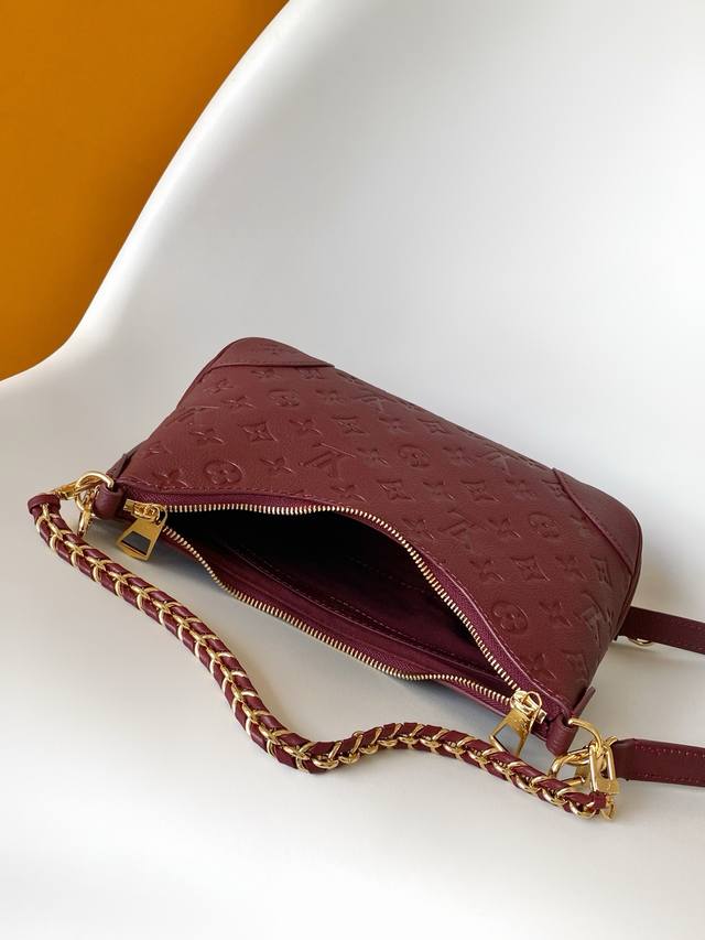 This Boulogne handbag is crafted from Monogram Empreinte leather in an elegant hue, subtly inspired by the Louis Vuitton Milky Way collection. A detachable woven chain and gleaming metal hardware add finishing touches, while its sophisticated design is suitable for storing everyday essentials. Dimensions: 16 x 9.5 x 29 cm (H x W x Length); Textured grain cowhide leather; Cowhide leather trim; Fabric lining; Metal hardware; Double zipper closure; Interior slip pocket (can hold smartphone, keys, small wallet, and earphones); Shoulder strap: Detachable and adjustable; Strap half-length: 31.0 cm; Strap half-length adjustable to: 50.0 cm; Chain: Detachable; Chain half-length: 25.0 cm.