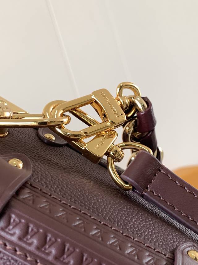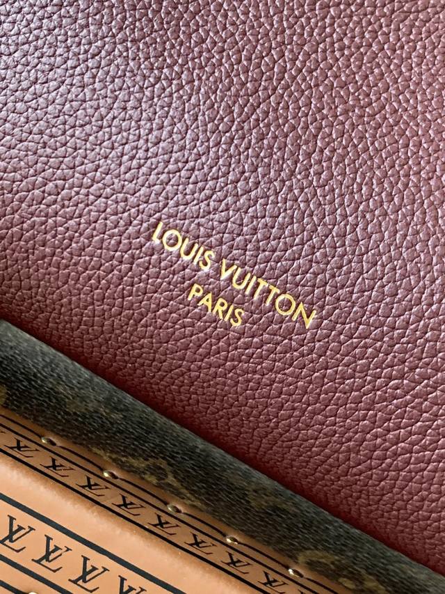 The Louis Vuitton Fall/Winter 2025 collection continues to interpret Louis Vuitton's trunk-making tradition. This Side Trunk medium handbag is crafted from iconic Monogram Saga leather, its vintage texture inspired by the classic trench coat worn by supermodel Freja Beha Erichsen in Nicolas Ghesqui