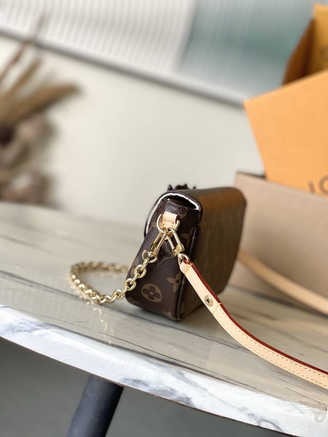 Top-tier replica M15148. This Wallet On Chain Lvy handbag from the Lv Travels With Grace Coddington series features hand-painted cat illustrations on Monogram canvas, subtly conveying the artist's love for cats. A detachable metal chain allows for multiple carrying options. Interior includes a slip pocket, a zippered pocket, and a card slot. Dimensions: 23.5