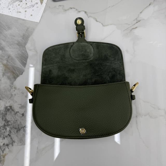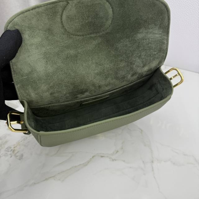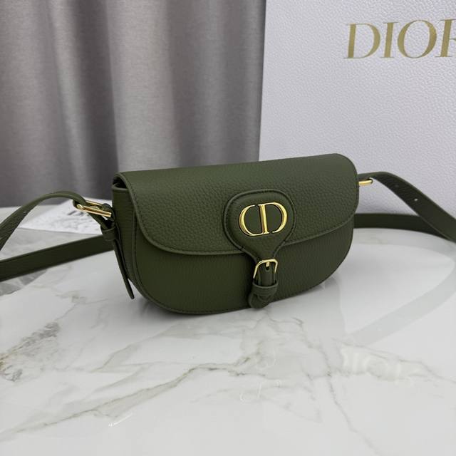 Top-tier replica of this Dior Bobby East-West handbag, a new addition to the 2025 Early Spring collection. It reinterprets the dumpling bag silhouette with elegant lines and balanced proportions, showcasing Dior style. Crafted from green grained calfskin leather, it's adorned with vintage gold-tone metal details for added sophistication. The detachable, adjustable shoulder strap can be adjusted with an elegant pin buckle, allowing for hand-carrying or shoulder-carrying for sophisticated daytime or evening looks. It can also be worn crossbody for a sporty vibe. Body: Calfskin leather; Lining: Lambskin leather, calfskin leather; Flap closure; Magnetic buckle with decorative clasp; Interior slip pocket; Adjustable, detachable leather shoulder strap; Item number: M9335