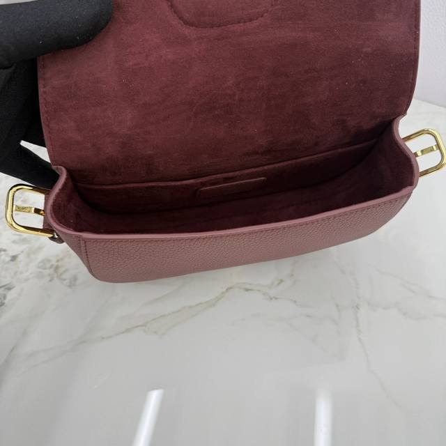 Top-tier replica of this Dior Bobby East-West handbag, a new addition to the 2025 Early Spring collection. It reinterprets the dumpling bag silhouette with elegant lines and balanced proportions, showcasing Dior style. Crafted from burgundy grained calfskin leather, it's adorned with vintage gold-tone metal details for added sophistication. The detachable, adjustable shoulder strap can be adjusted with an elegant pin buckle, allowing for hand-carrying or shoulder-carrying for sophisticated daytime or evening looks. It can also be worn crossbody for a sporty vibe. Body: Calfskin leather; Lining: Lambskin leather, calfskin leather; Flap closure; Magnetic buckle with decorative clasp; Interior slip pockets; Adjustable, detachable leather shoulder strap; Item number: M9335