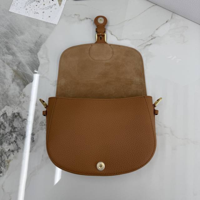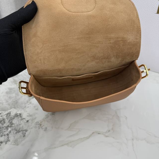 Top-tier replica of this Dior Bobby handbag, a new addition to the 2025 Early Spring collection. It reinterprets the dumpling bag silhouette with elegant lines and balanced proportions, showcasing Dior style. Crafted from brown grained calfskin, the interior is lined with suede calfskin for added softness, and adorned with vintage gold-tone metal details for a sophisticated touch. Medium size, with a detachable, adjustable shoulder strap and elegant pin buckle adjustment, it can be carried by hand, over the shoulder, or crossbody. Body: Calfskin leather; Lining: Lambskin leather, calfskin leather flap closure; Magnetic buckle with decorative clasp; Interior slip pockets; Adjustable, detachable leather shoulder strap; Item number: M9337