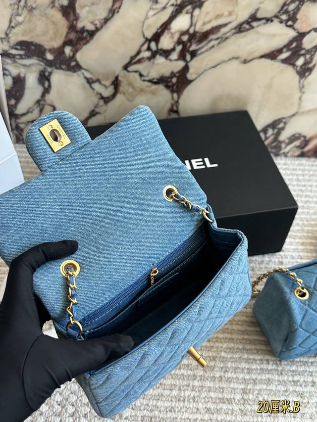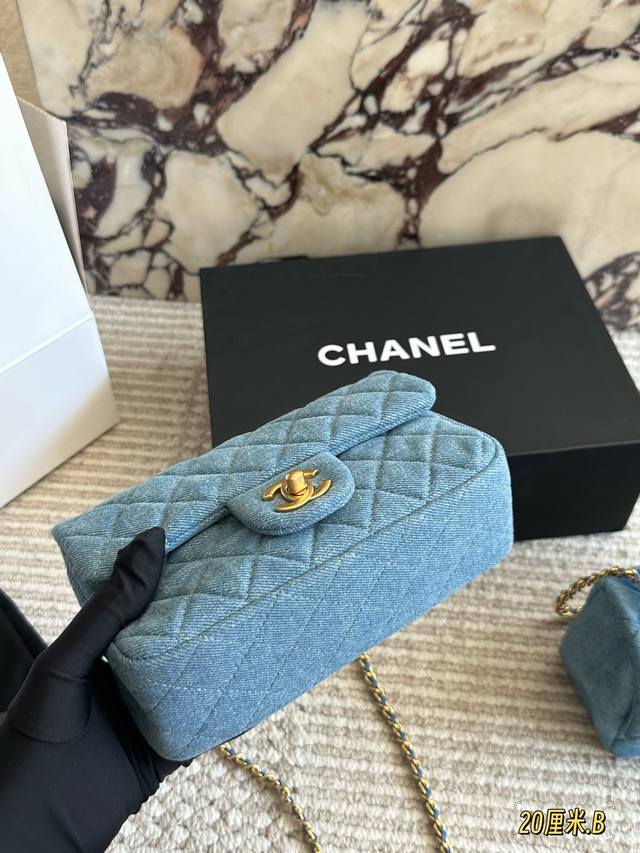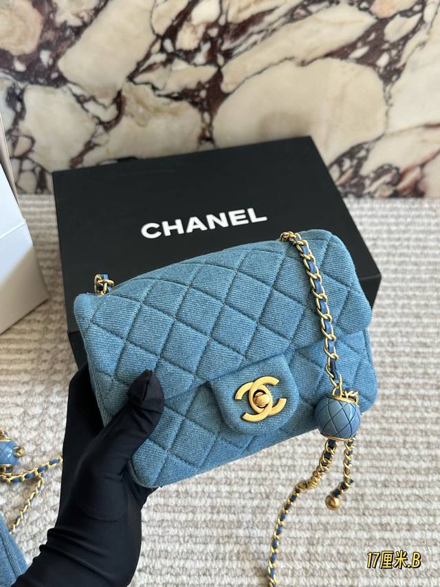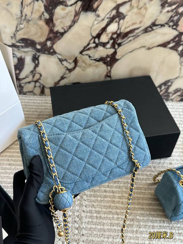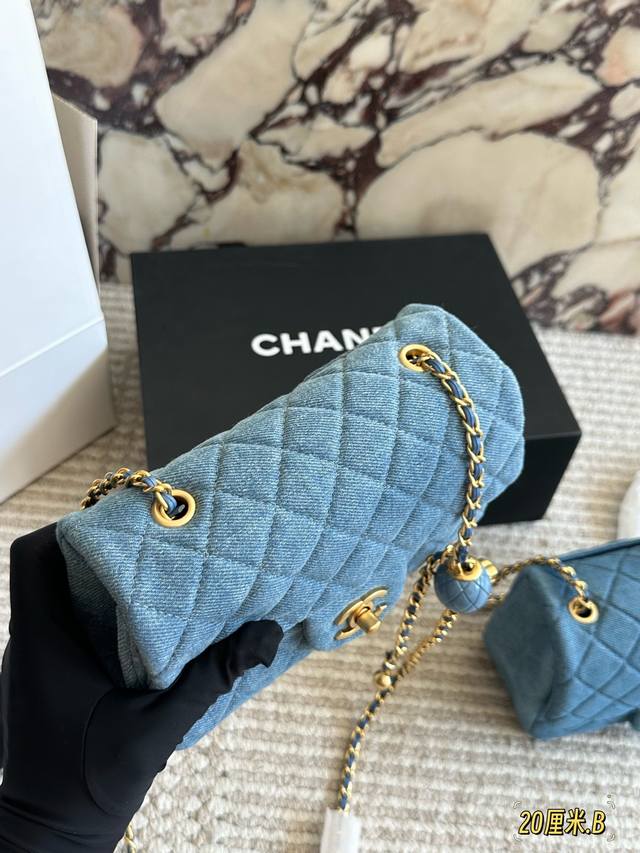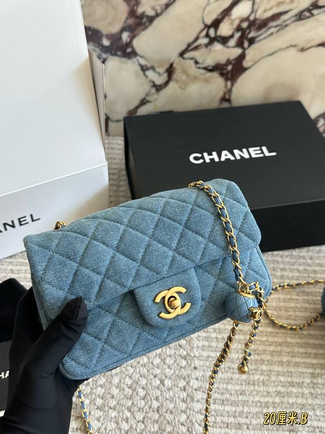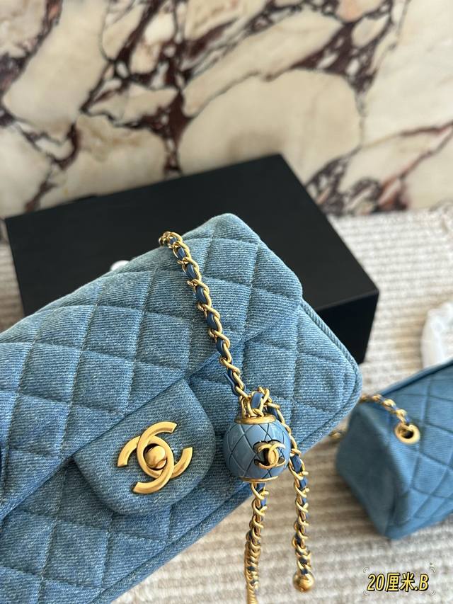 Chanel denim gold ball square bag