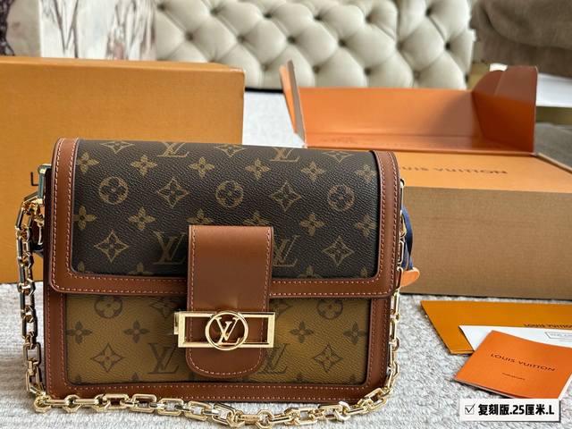 Upgraded version with box. Size: 25*20cm. Large size. Daphne brand with chain shoulder strap. This model is accurate to the original, high quality, and features improved hardware! The addition of a more secure hardware buckle makes it even more stable. A complete upgrade!