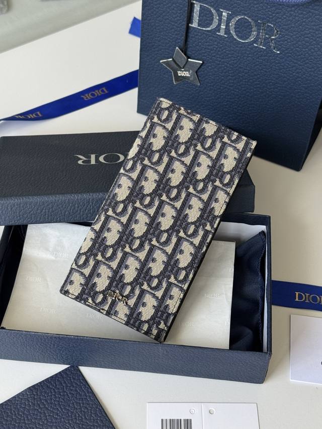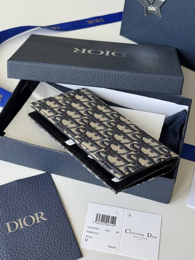 This long wallet is elegant and practical. It is crafted from beige and black Oblique print fabric, with a smooth black calfskin interior. The bi-fold vertical design features a metallic brass Dior logo on the front for added sophistication. It has 4 cash compartments, 16 card slots, and 1 zippered coin compartment. Elegant and spacious, it's the perfect everyday companion.