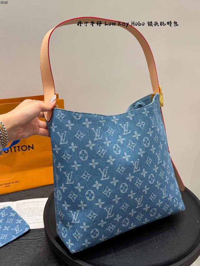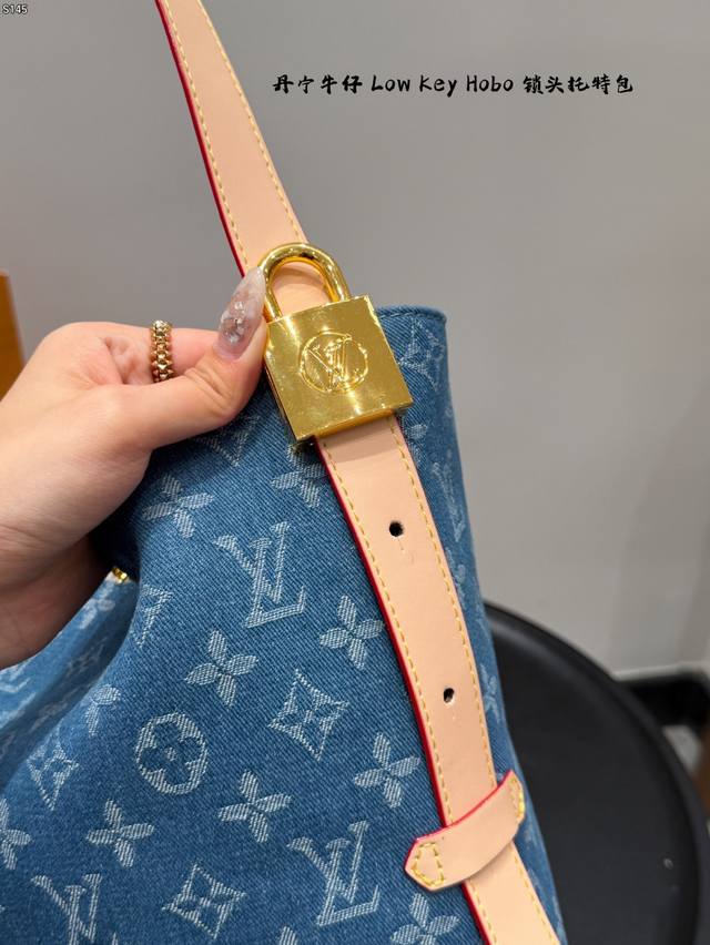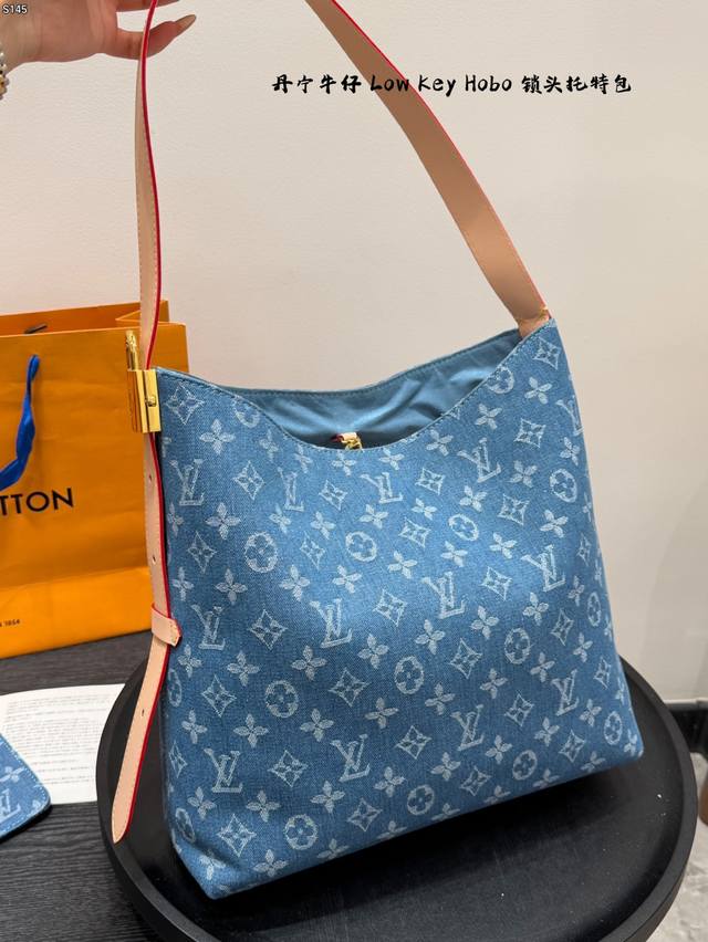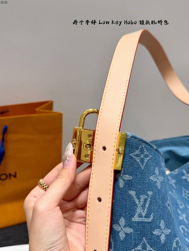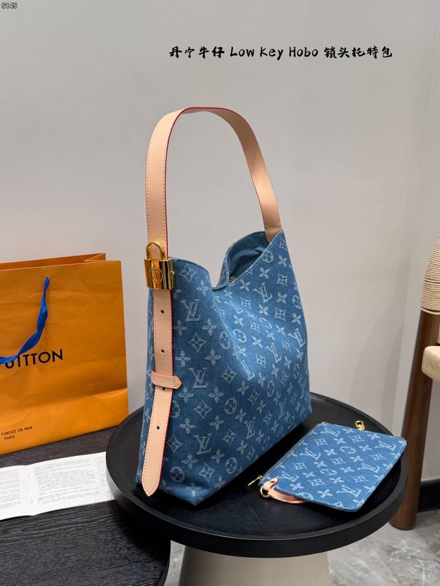 Low Key Hobo Tote Bag with Box, featuring a classic padlock and adjustable shoulder strap. It offers ample space for laptops and other everyday essentials. Lightweight and comfortable to wear, its practicality is unparalleled