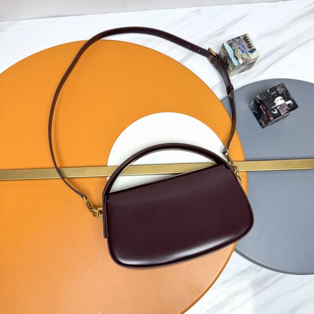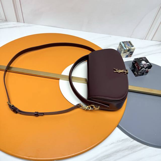 ) This bag is named after Voltaire, the French writer and philosopher of the 18th-century Enlightenment who advocated freedom and a relaxed lifestyle. The entire bag is crafted from top-grade luxury Box calfskin with a slightly glossy finish, making it soft and lustrous, highlighting the leather's texture. The half-moon shape is a very chic contemporary design, incorporating many elements of the bourgeois-Bourgeoisie style, exuding elegant charm and perfectly complementing an urban look! (